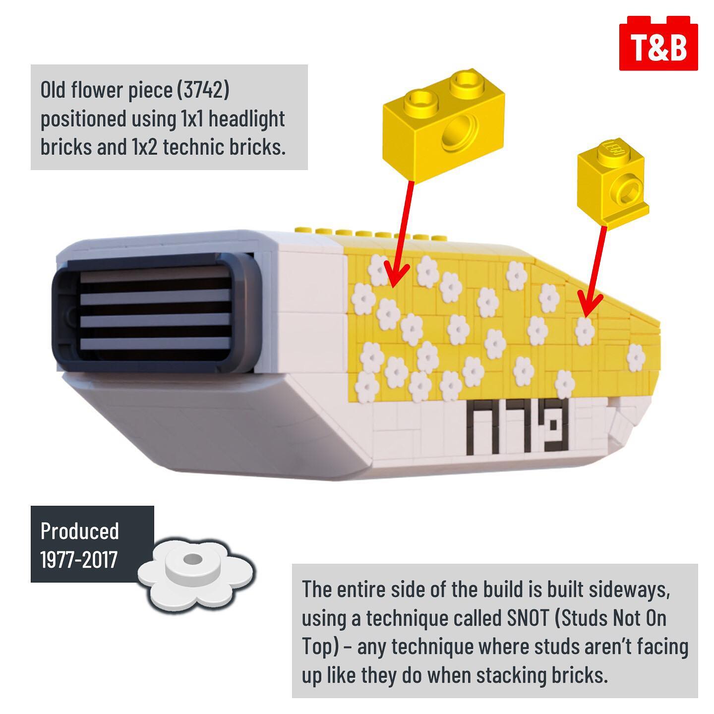 The design features some amazing techniques such as using headlight bricks to place flowers and using slopes to angle sections of the side to create various shapes. Which design is your favourite?