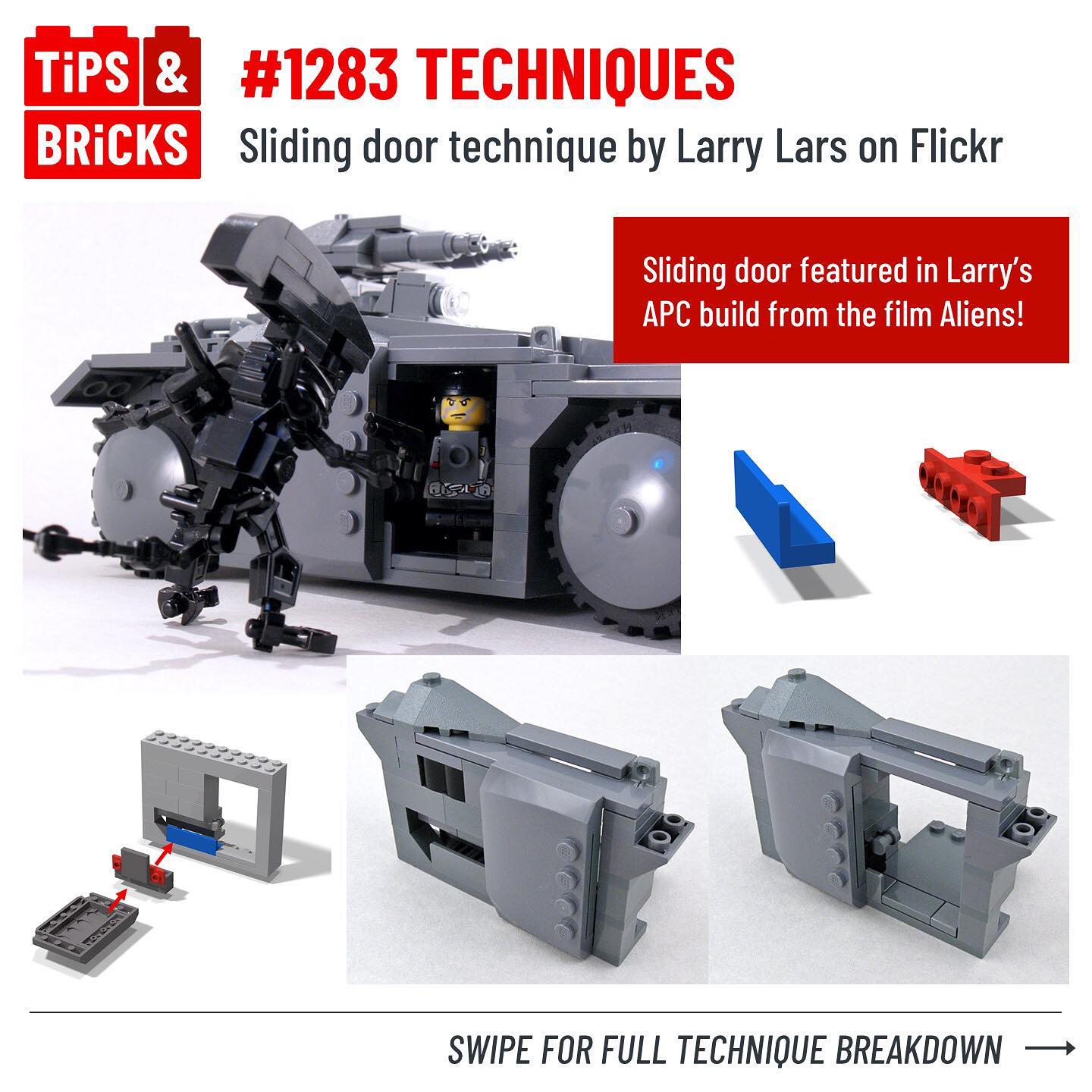 Today we’re showcasing a fun sliding door technique created by Larry Lars on Flickr, for an MOC from the movie Aliens.