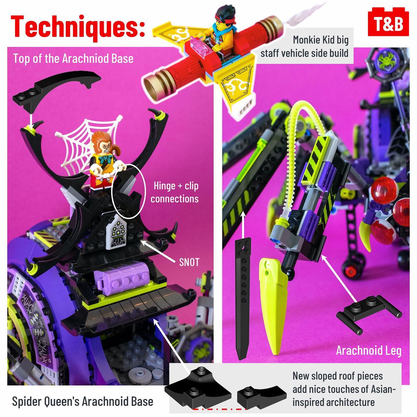 Today we’re continuing our reviews of the new Monkie Kid wave of sets with two sets that are villain-focused: 80019: Red Son’s Inferno Jet & 80022: Spider Queen’s Arachnoid Base. We were sent this by LEGO but our view is unbiased and we aim to provide a unique review from the perspective of a MOC builder and fan of building techniques. We score sets out of 100, giving 20 points each for a variety of factors.