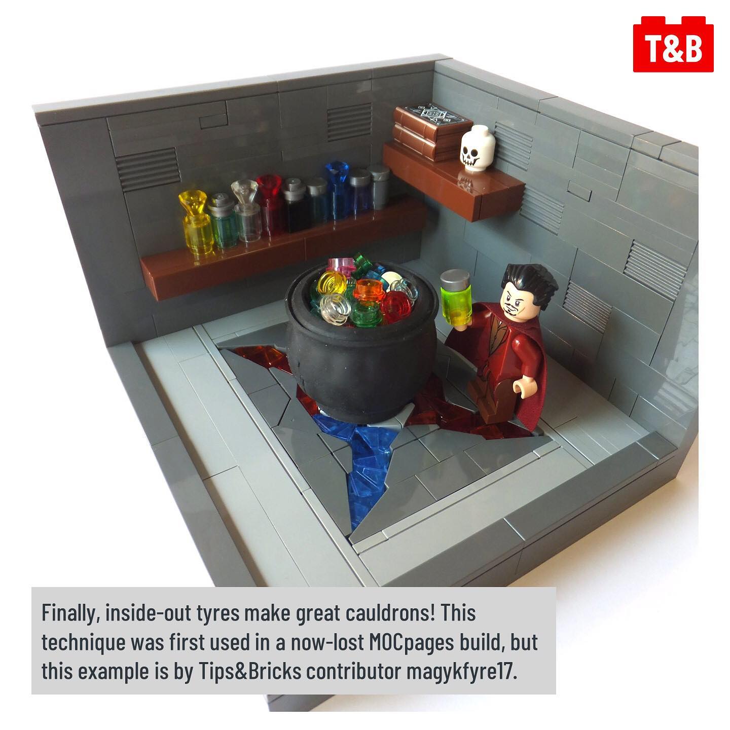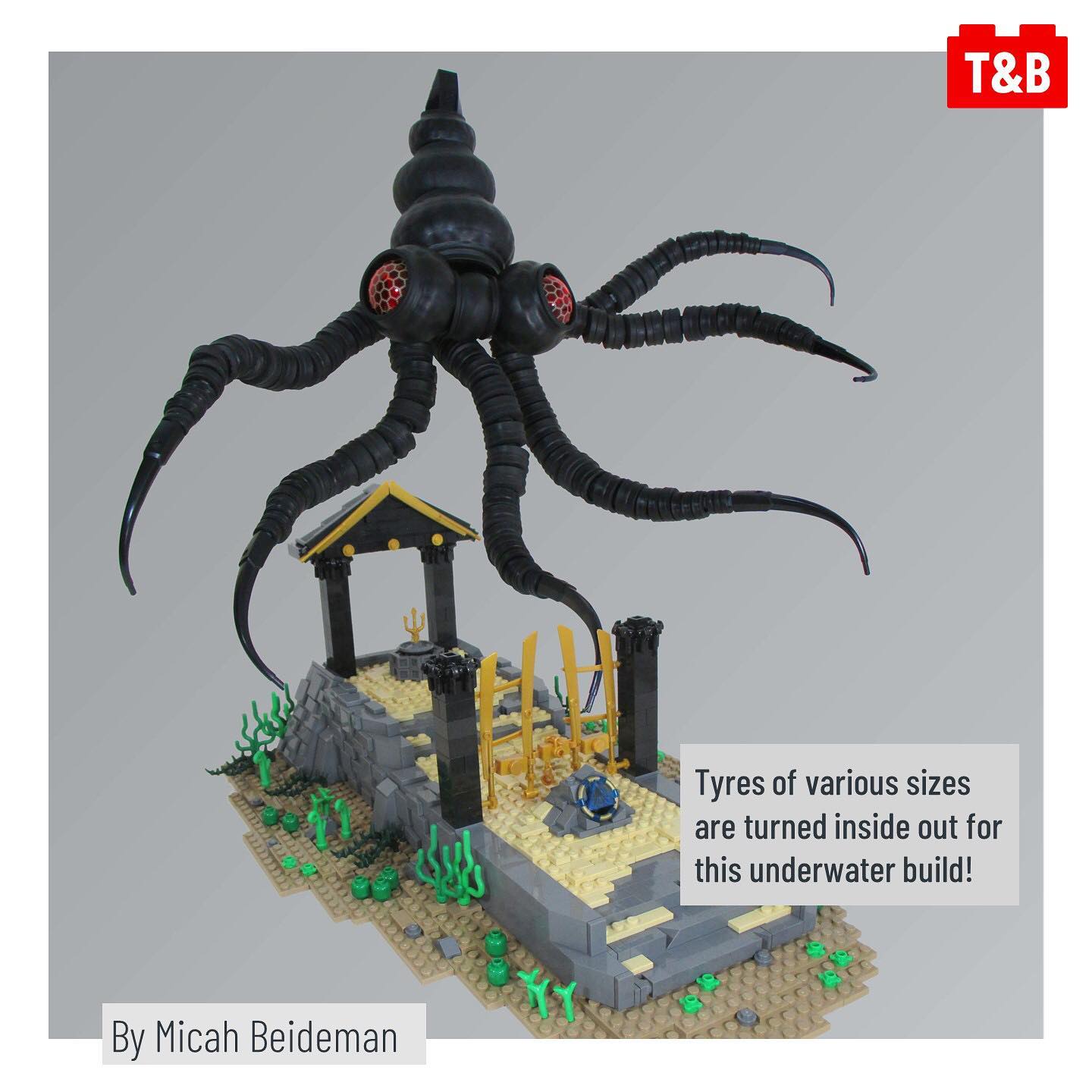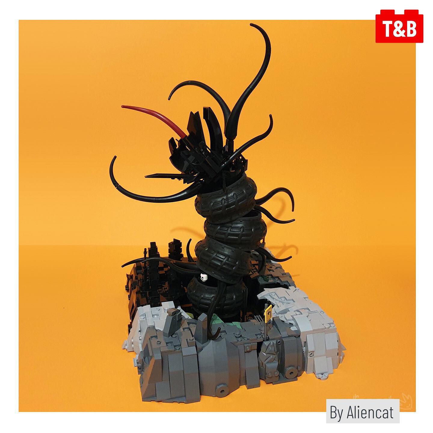 @grantdvs1 creates a realistic beetle’s body, while @hacimbricks uses various tyre sizes to create a giant Kraken. Meanwhile @aliencat creates a horrifying monster using the textures of larger tyres, and finally a cauldron technique that, by our research, dates back to a MOCpages link that sadly no longer exists. Luckily, our contributor @magykfyre17 has a demonstration of it! (All builders on Instagram.)