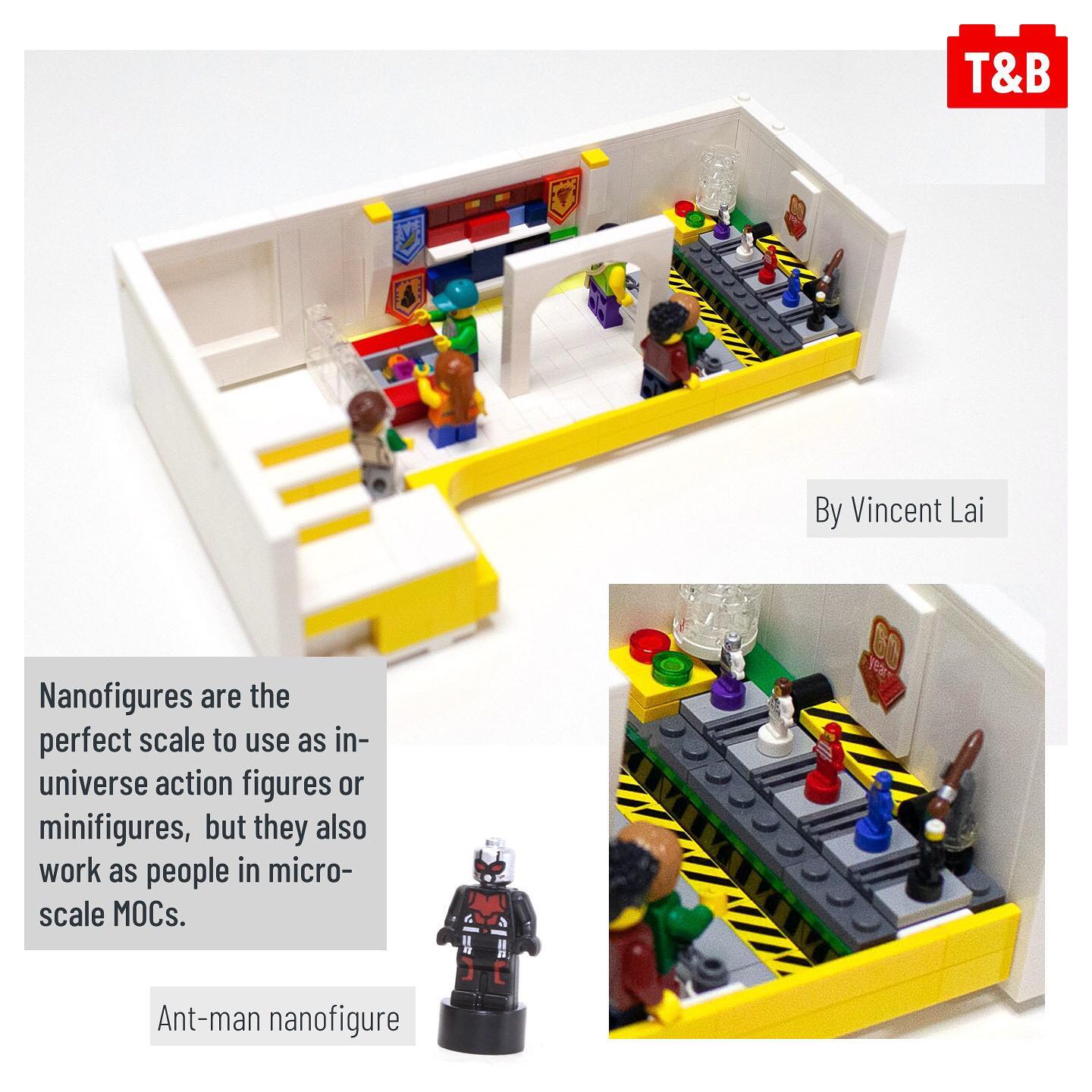 Not many pieces are as versatile with scale as the minifigure statue, also known as the minifigure trophy or nanofigure! With this LEGO part, you can go small, using the nanofigure as a person in a microscale MOC, like @drdoddo does. Or you can use it in minifigure scale, like Vincent Lai (on Flickr) does in his very meta MOC of a LEGO minifigure. After all, unlike microfigures, the nanofigure has almost identical proportions to a minifigure.