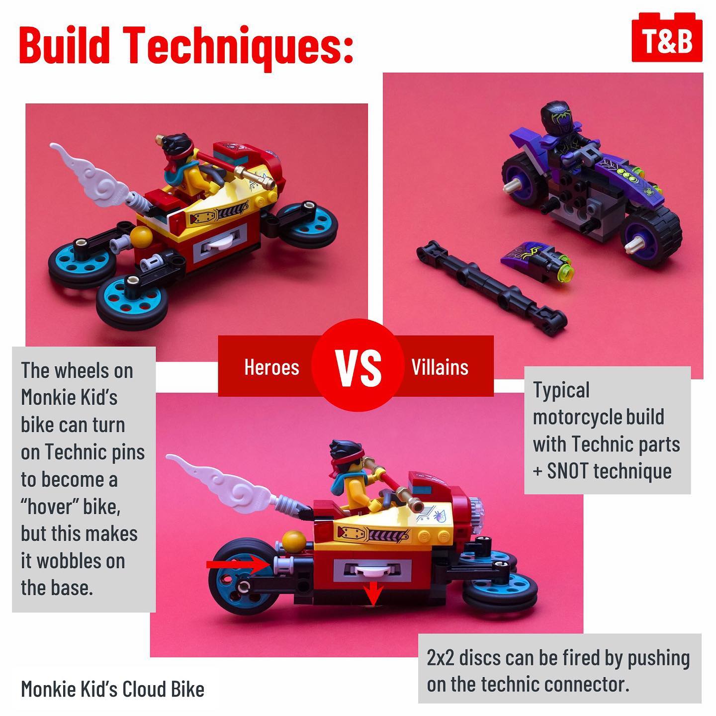 The first set is the smallest Monkie Kid set ever, 80018: Monkie Kid’s Cloud Bike, and it pleasantly surprised us with it’s great part selection that offers a great taste of Monkie Kid exclusive parts and the 3 good figures. The only thing letting this model down are the uninteresting techniques, and while it is a small set so this is to be expected, more clouds on MK’s bike would have been nice.