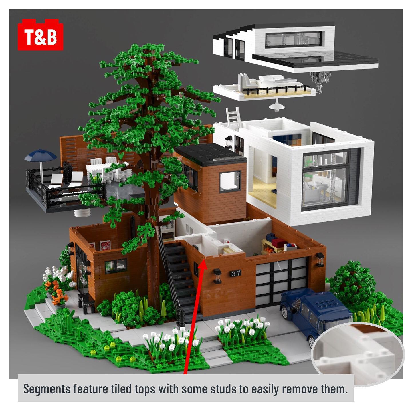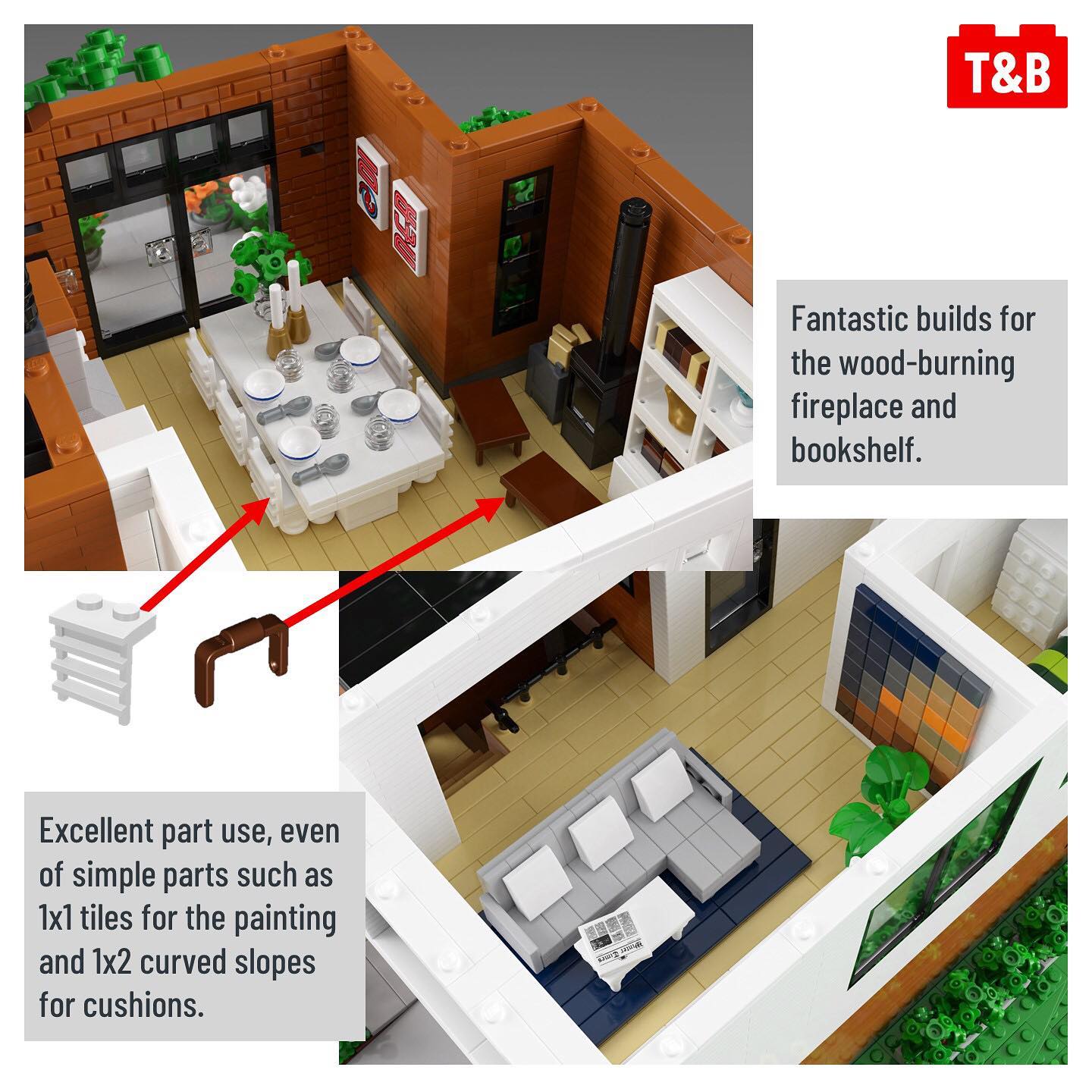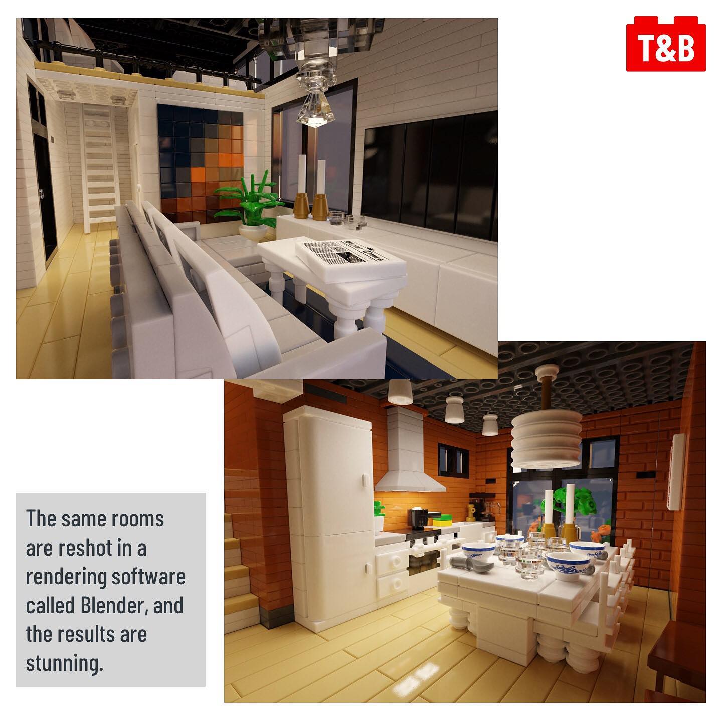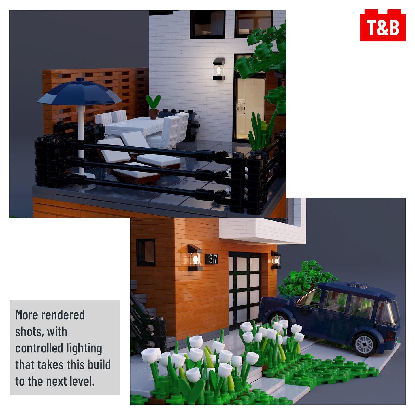 We’ve featured a few builds by aukbricks, but their latest is truly an Architect’s dream. With clean lines and bold contrasting colours, this building is a feast of details and clever techniques especially when you see pictures of the inside. What really brings this MOC to the next level are the renders aukbricks has created, making rooms look beyond stunning!
