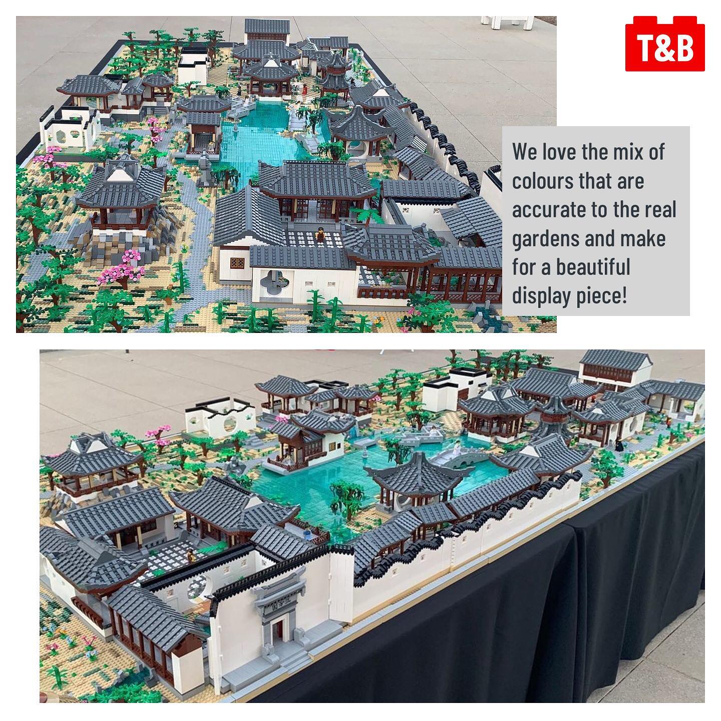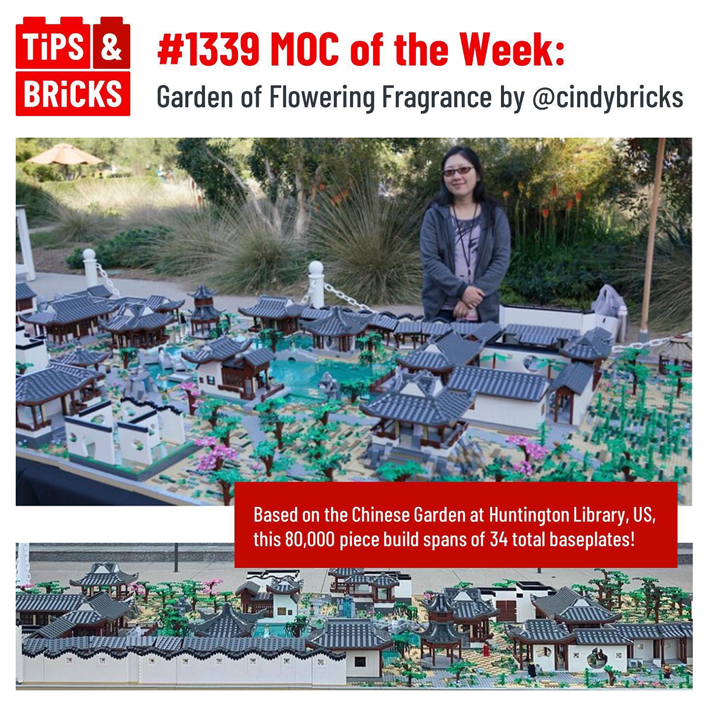 This week’s MOC of the week is by Cindy Zhan: Garden of Flowering Fragrance! The build is based on the Chinese Garden at Huntington Library in the US. This astonishing build is 4.5 ft by 10ft, took 18 months to build and used about 80K pieces (including 6K of the dark blue grey cheese slopes for the roofs!). It’s built on 34 total baseplates for easier assembly and transportation to conventions. She has displayed this build at BricksLA in 2019 and 2020 (as she added an expansion to the MOC for 2020 to match the real garden’s expansion). We love the roof and window technique employed, as well as the mix of colours that are accurate to the real gardens and make for a beautiful display piece!