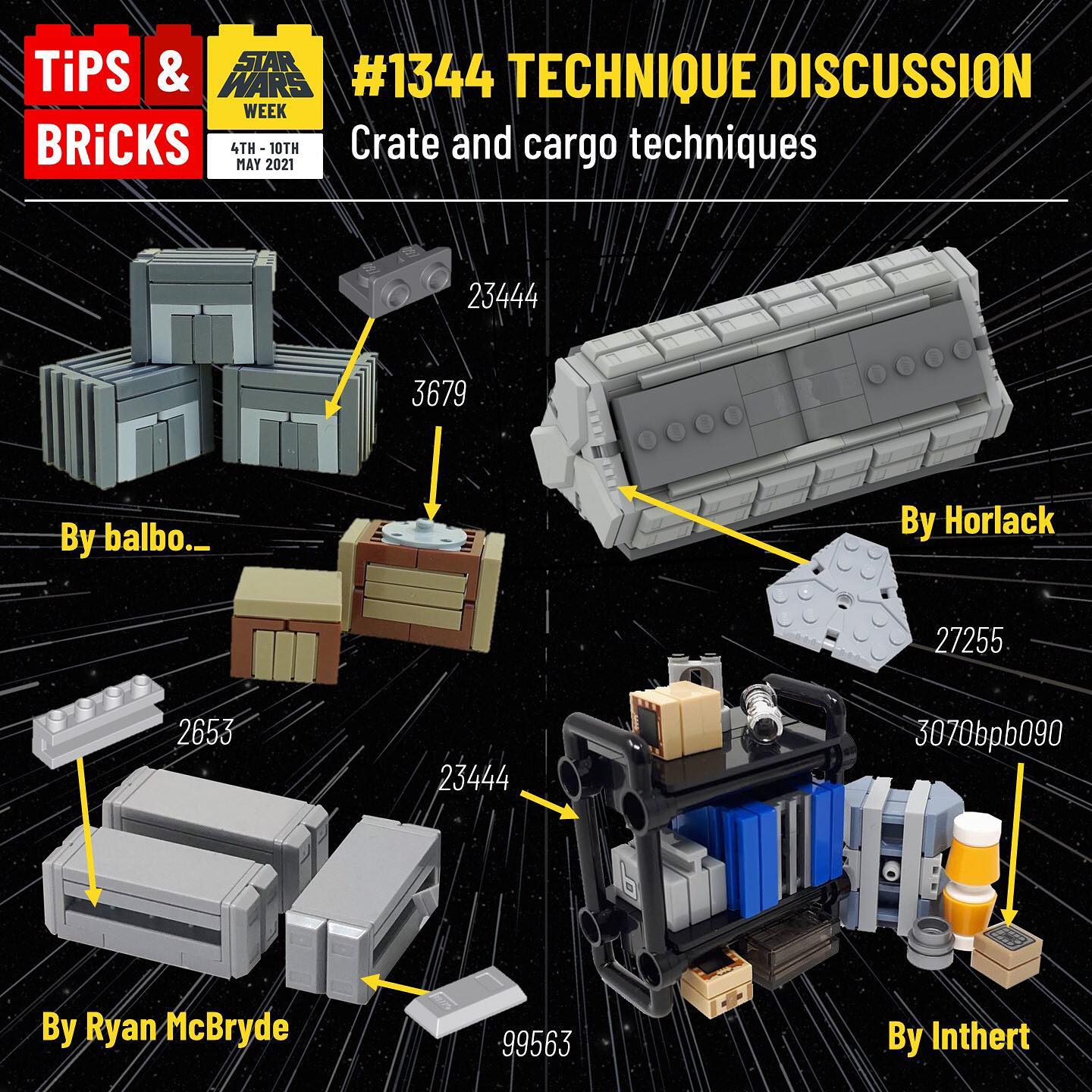 Continuing on with Star Wars week, today we take a look at an excellent way to fill up the empty space in your sci-fi builds – adding crates and cargo! They’re also an excellent way to try out and include cool little techniques in your build. Which example is your favourite?