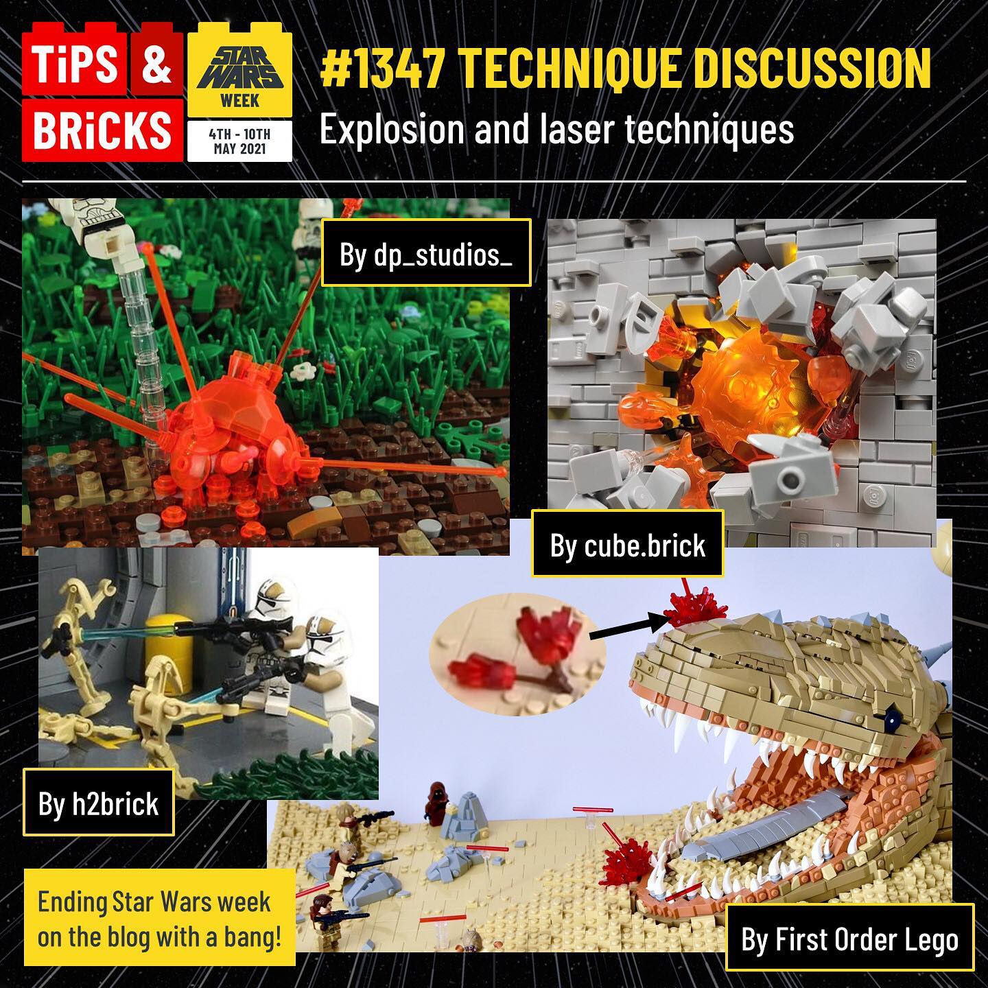 We’re ending Star Wars week on the blog with a bang – discussing techniques to add explosions and lasers to your MOCs! We cover the parts used for creating them and how to position the parts, with some ingenious techniques such as using stems to even using the droid bodies!