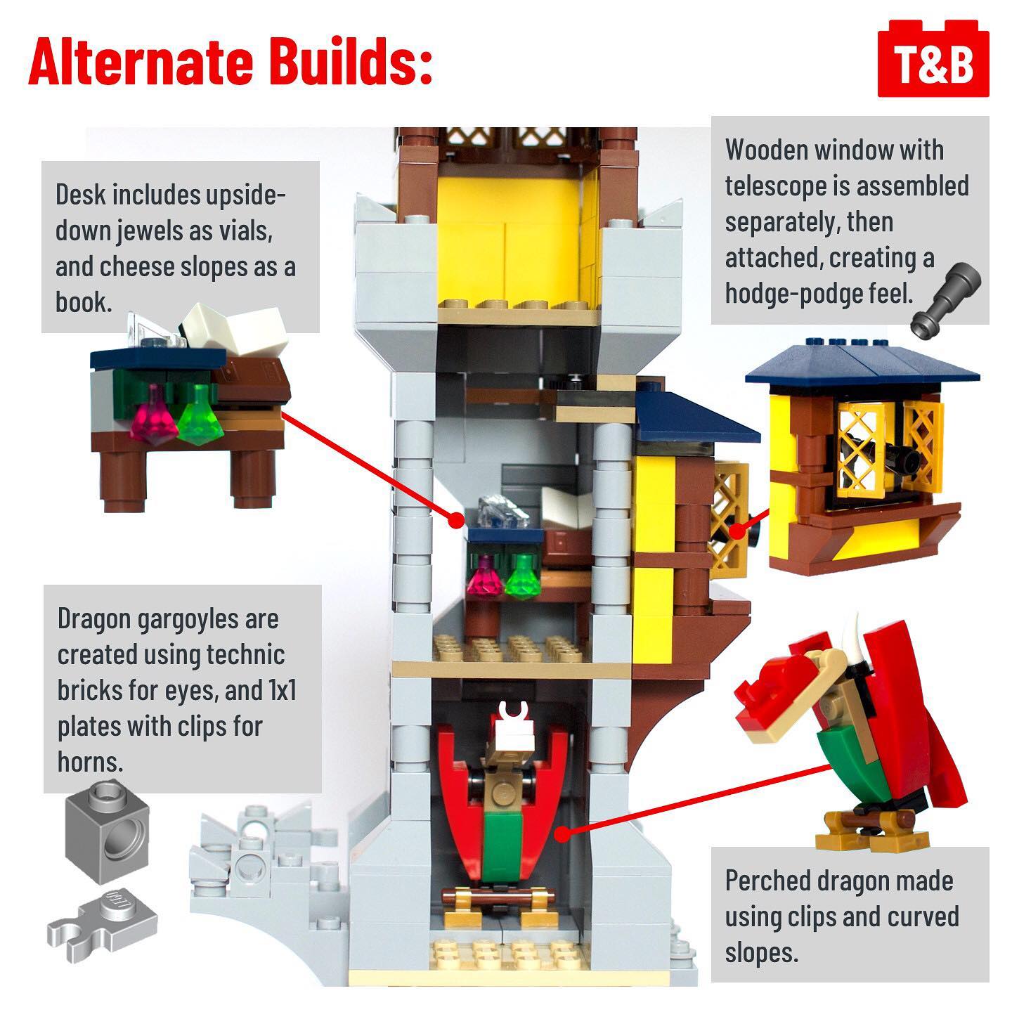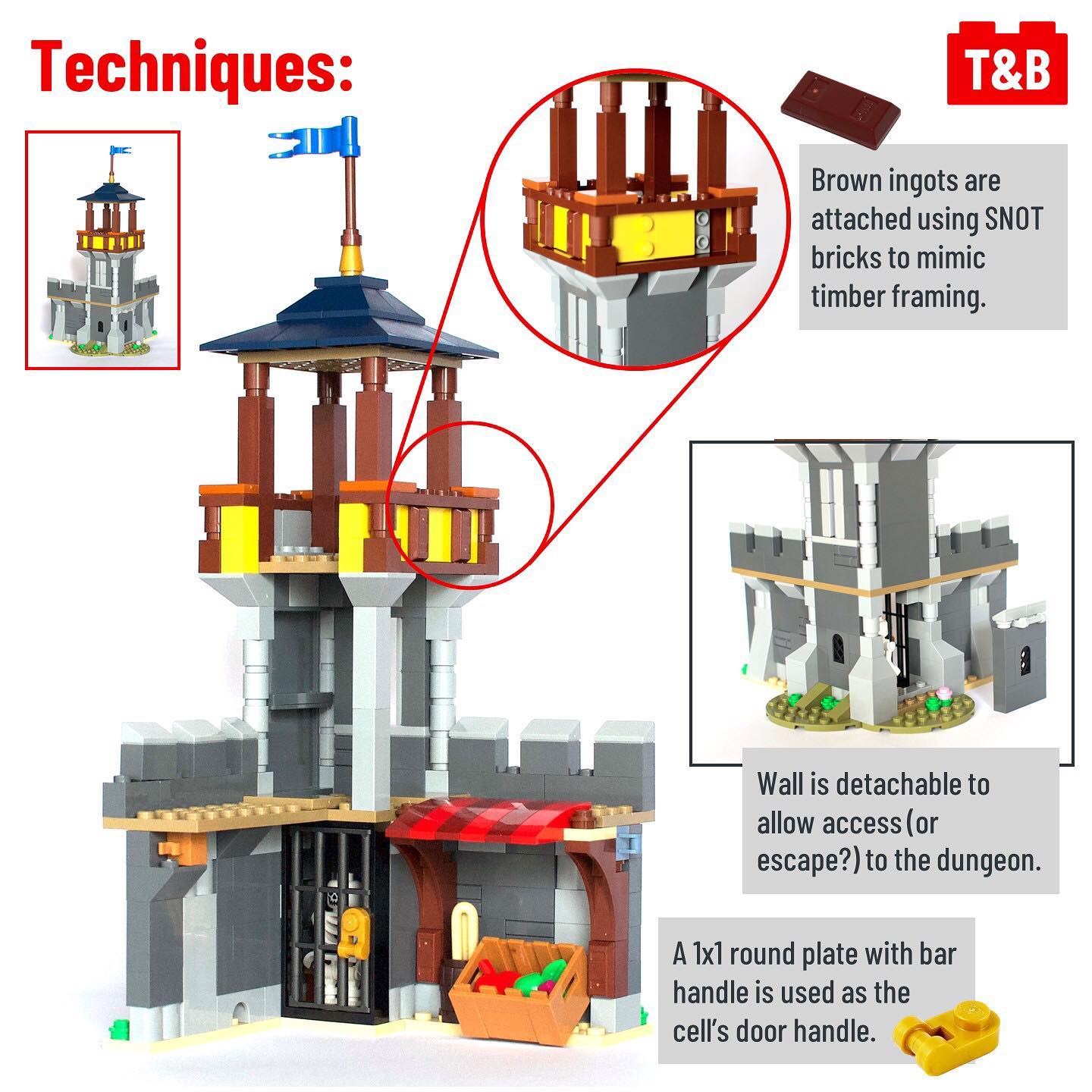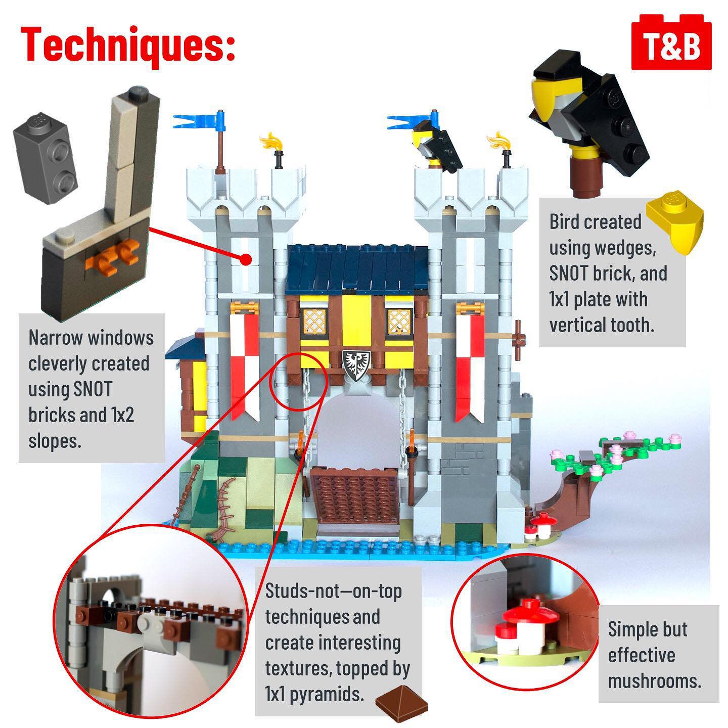 This build is impressive, with a sizeable castle made up of three different buildings. The set includes several interesting techniques, ranging from SNOT windows and frames to several different technic mechanisms. Additionally, each of the alternate builds is on-par with the primary build, and all three possible builds can be joined together using clips to create an even bigger castle. Overall, this is an excellent castle build, with the potential for creativity and expansion as well!