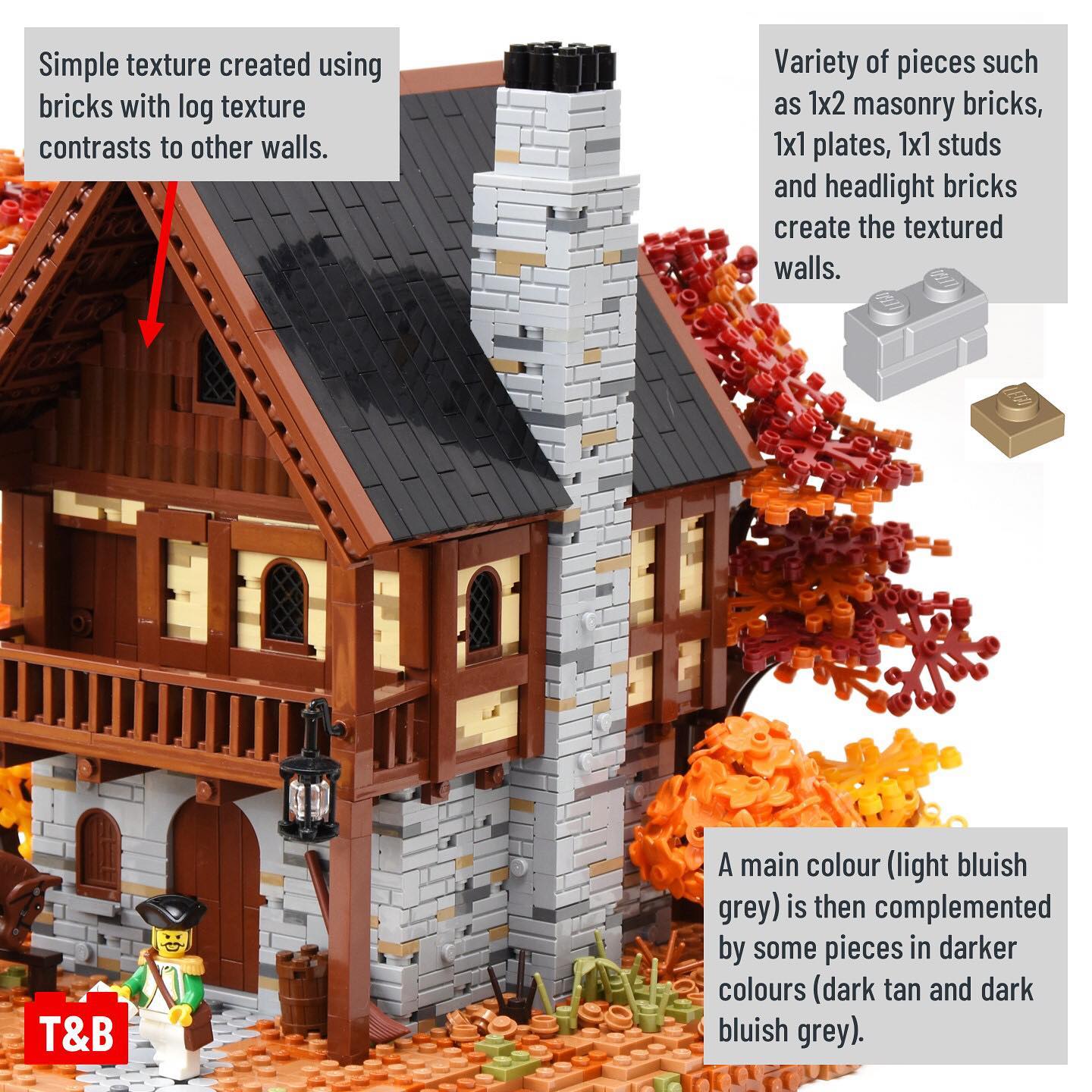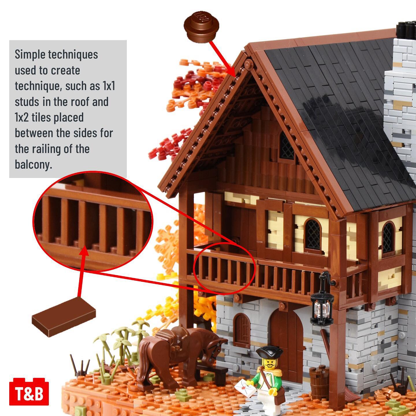 This week we’re analysing the techniques that go into a build called the Post Master’s House and Office by @ayrlegodc . The gorgeous colour scheme and the simple yet effective techniques make this a fantastic build! We love how they’ve built the walls to have texture using fairly common pieces, as well as the clever use of 1×2 tiles for the railing of the balcony!