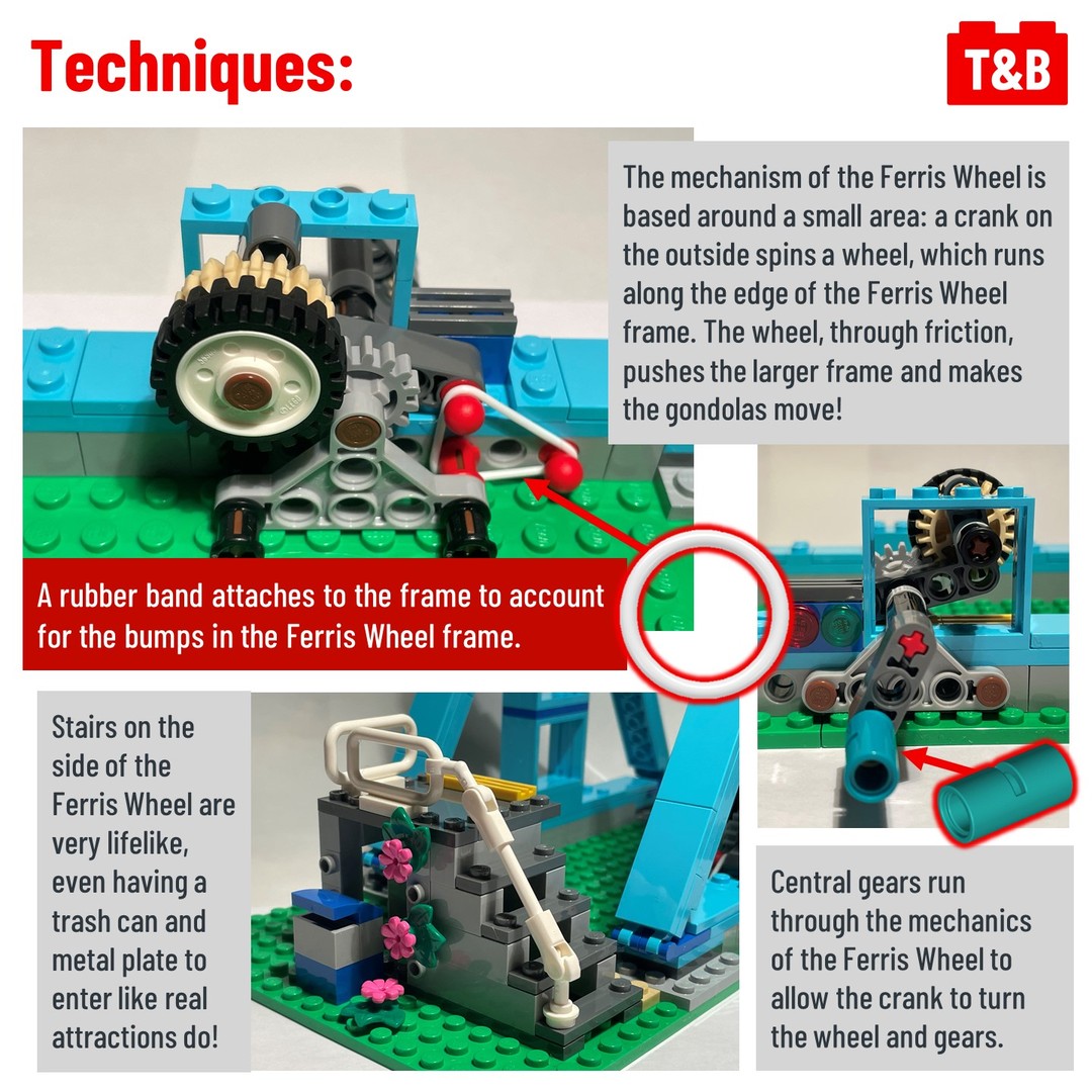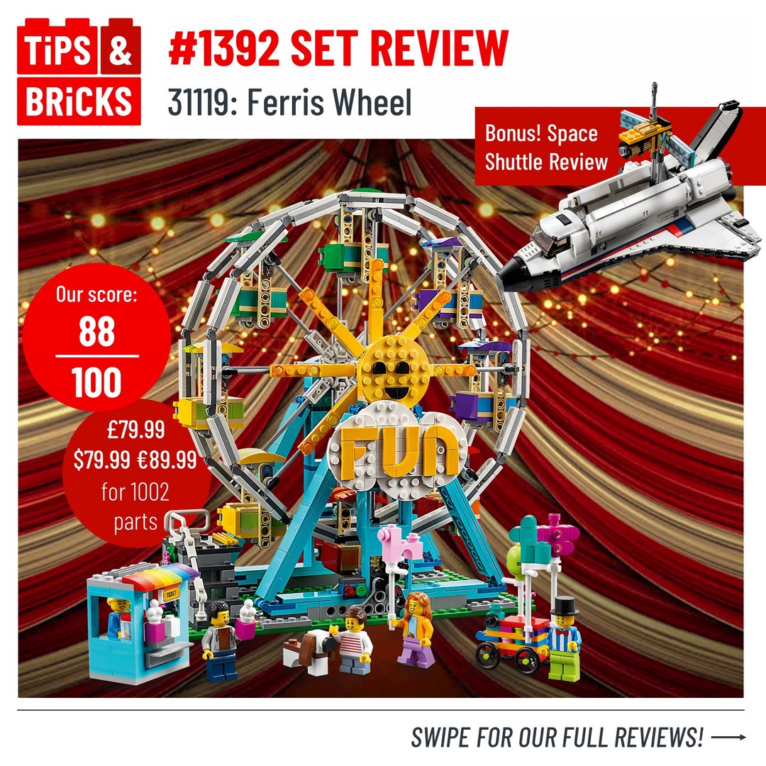Firstly we looked at 31119: Ferris Wheel, and we can say that’s it’s attractive exterior does not disappoint, with complicated and unique building techniques and excellent functionality! Despite this being the 4th Ferris wheel from LEGO it manages to improve on the others while being unique, and it’s smaller size makes it cheaper and easier to integrate into your LEGO city.