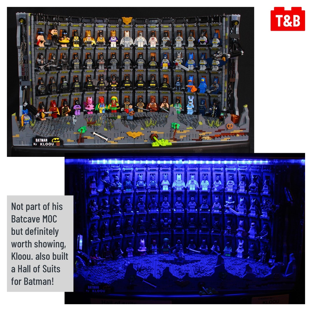 Furthermore, Jerome also contructed also built a Hall of Suits for Batman to display his large Batman suit collection! While not part of the Batcave MOC it’s definitely worth showing