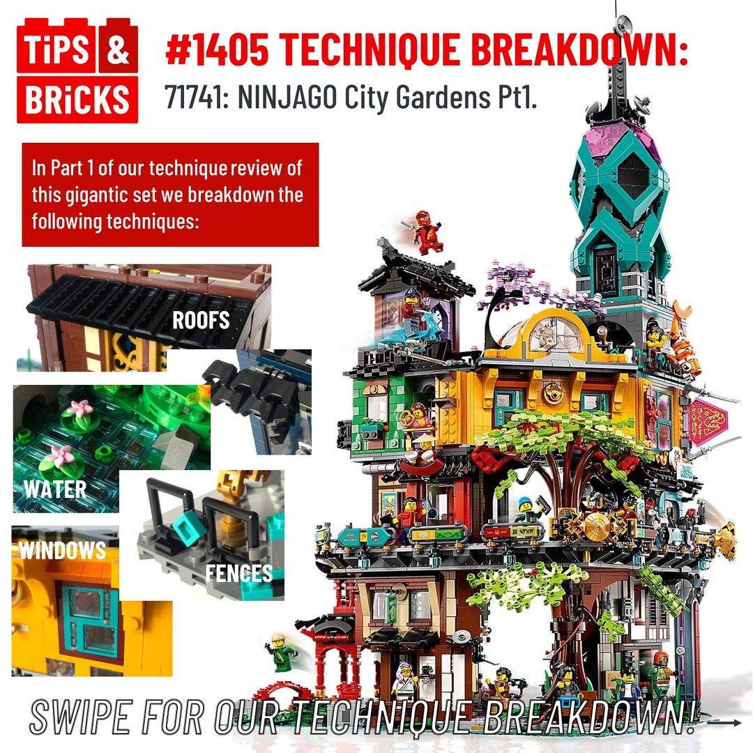 Usually when we review a set we showcase the building techniques as part of our review, but for 71741: NINJAGO City Gardens there were so many AWESOME techniques that we having to dedicate not just one, but two posts to techniques solely! This is Part 1 where we’re looking at roof, fence, water and window techniques from the set. Swipe through to see our breakdown of these techniques!