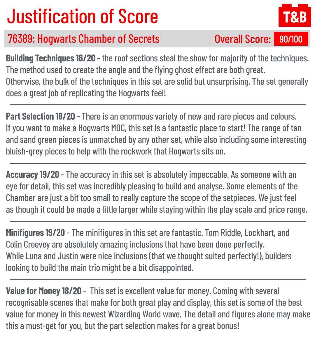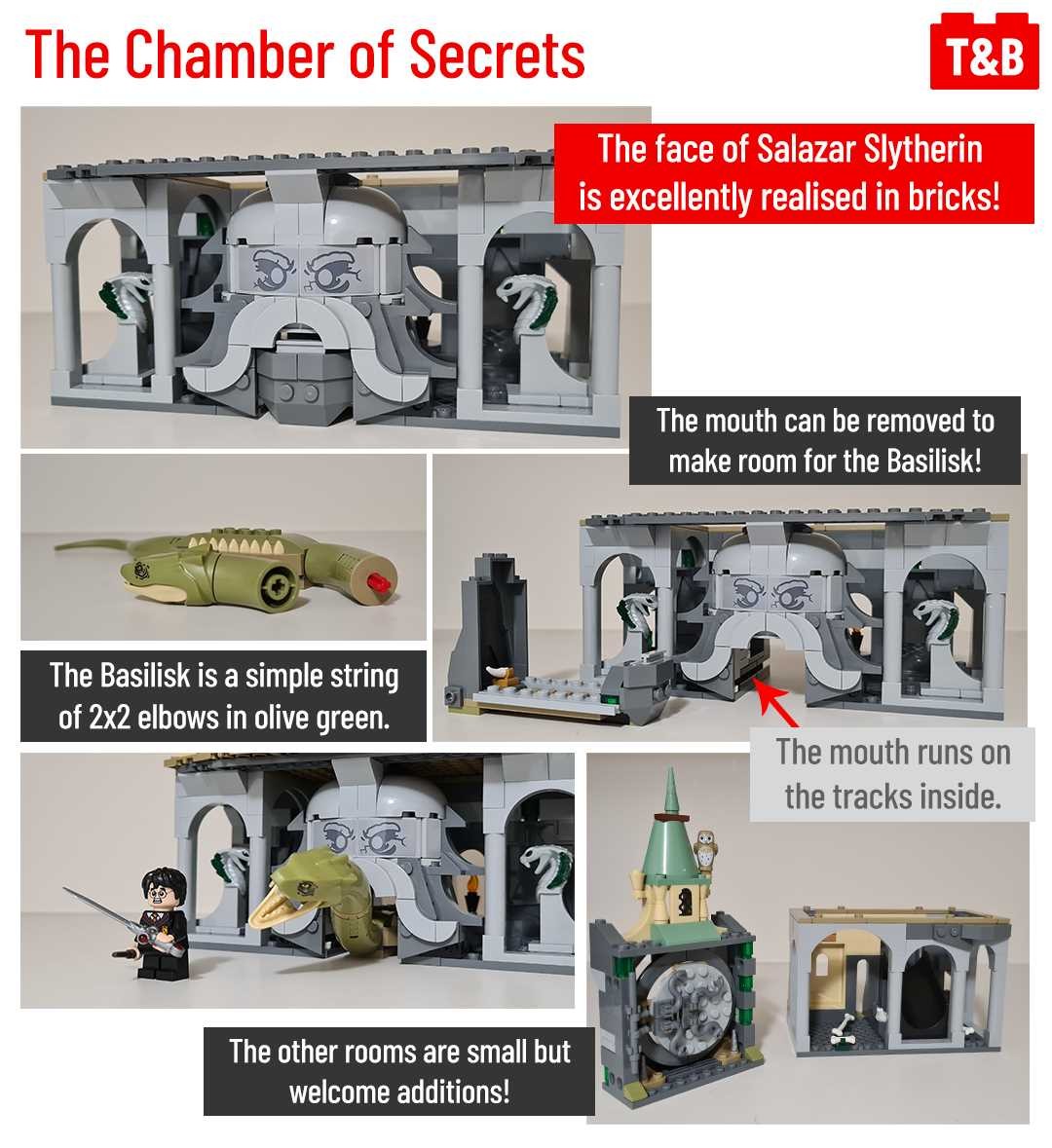 Today we’re featuring our final review from the new wave of Wizarding World sets – the Chamber of Secrets! We were sent this set by LEGO but our view is unbiased and we aim to provide a unique review from the perspectives of MOC builders and fans of building techniques. We score each set out of 100, giving 20 points each for a range of factors.