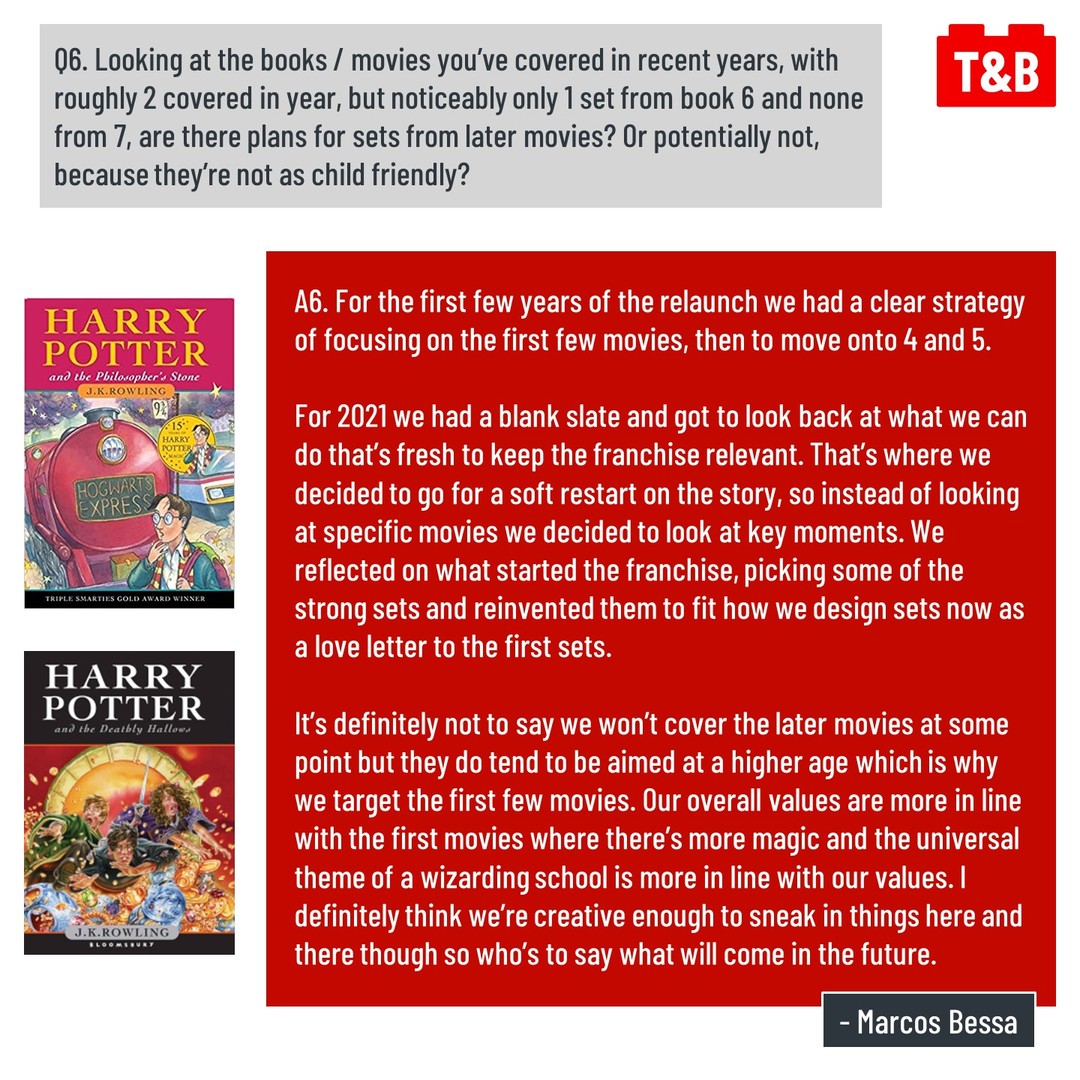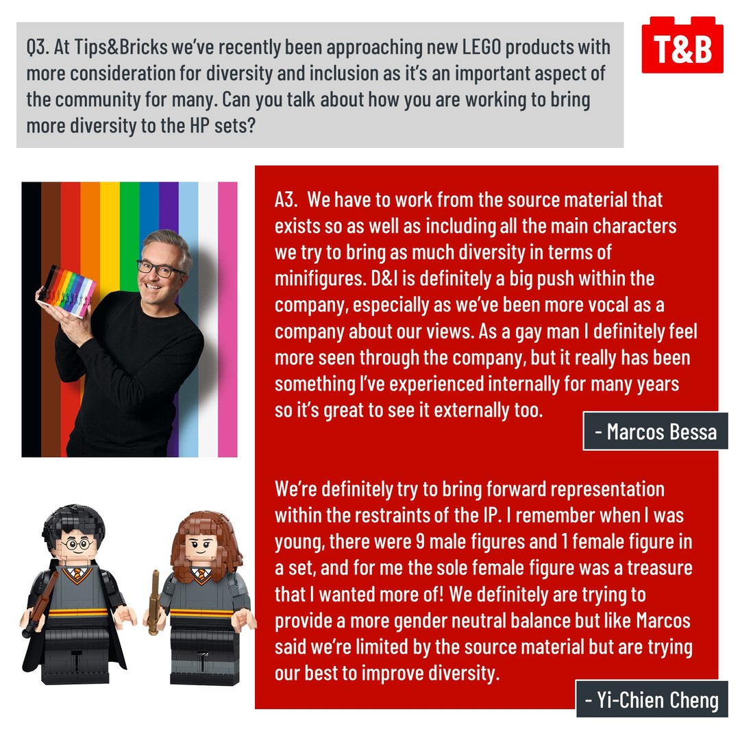 Our final interview was with designers Marcos Bessa @marcosbessaofficial and Yi-Chien Cheng from the Harry Potter theme. They answered questions on how diversity and inclusion has influenced their choices, whether we’ll ever get sets based on the 7th book or scenes that don’t appear in the films, and what inspired the doll-house style of the new sets.