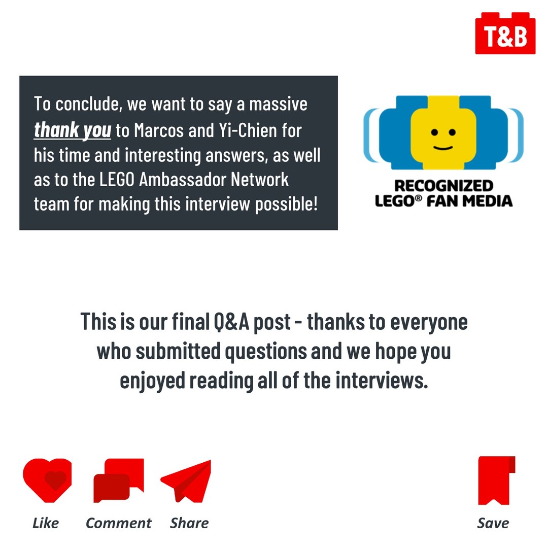 We want to say a massive thank you to Marcos and Yi-Chien for their time and interesting answers, as well as to the LEGO Ambassador Network team for making this interview possible!