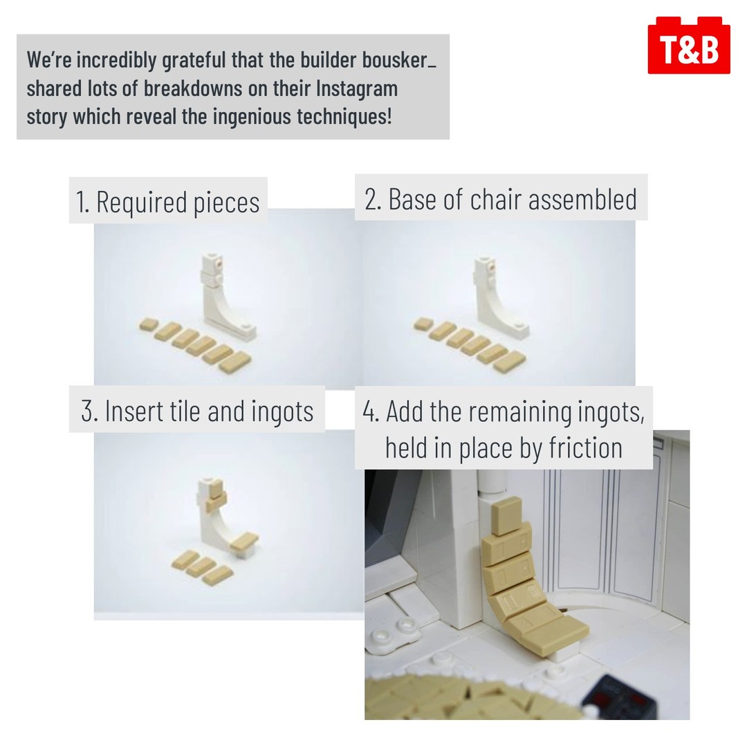Today we’re breaking down the techniques in this relatively small but nevertheless impressive build by bousker_ here on Instagram! We’re fortunate that they shared breakdown images on their Instagram story which reveal how three elements of the build are put together – the chairs, bench and vent. Which design is your favourite of the three?
