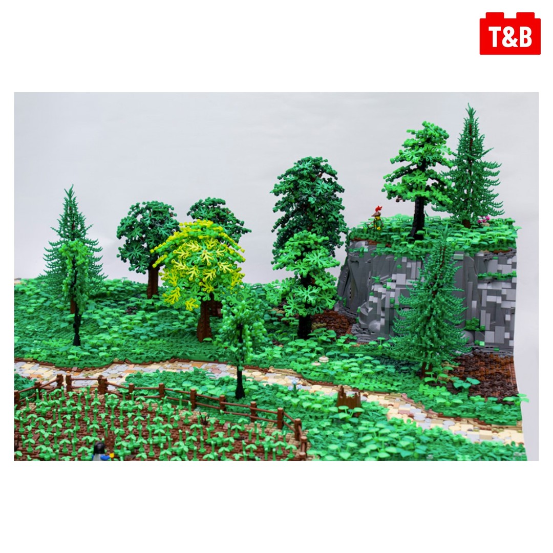 Some of our favourite parts of this build are the designs for sheep in the fields and the various designs for trees. Looking for more, similar tree designs? Check out our Tree Technique handbook on our website, linked in our bio.