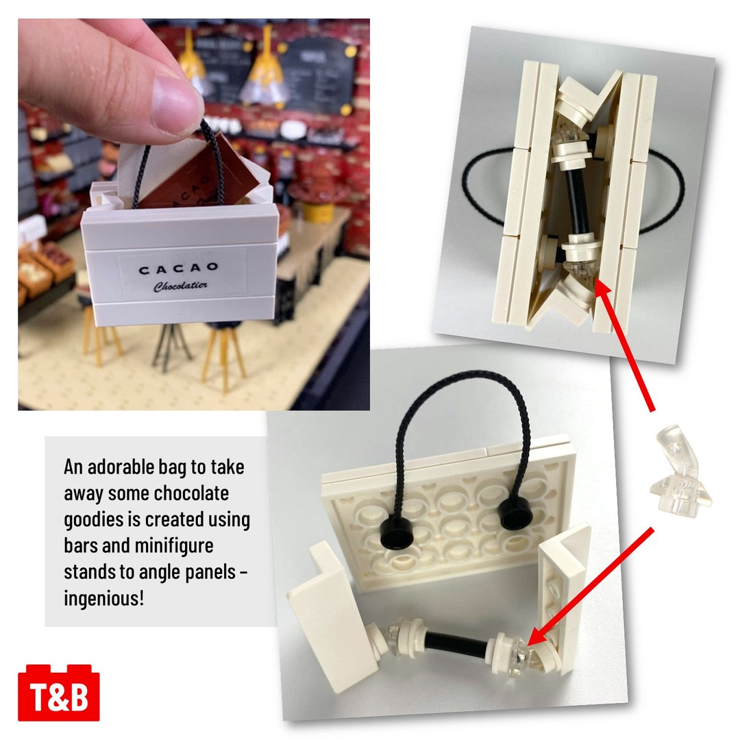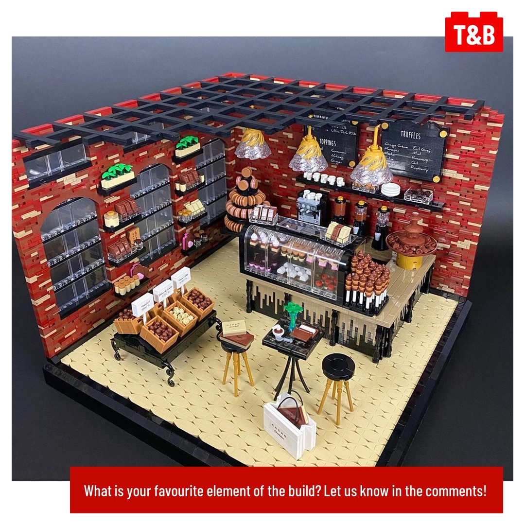This week’s technique analysis is of a gorgeous Chocolate Shop that has our mouth-watering and is full of interesting techniques! Kelly Bartlett has crammed so many details and techniques into this build that there are too many to cover, but we’ve picked out our favourites and Kelly kindly supplied us with some breakdown pictures. Pour over the pictures and get ready to crave something for your sweet tooth!