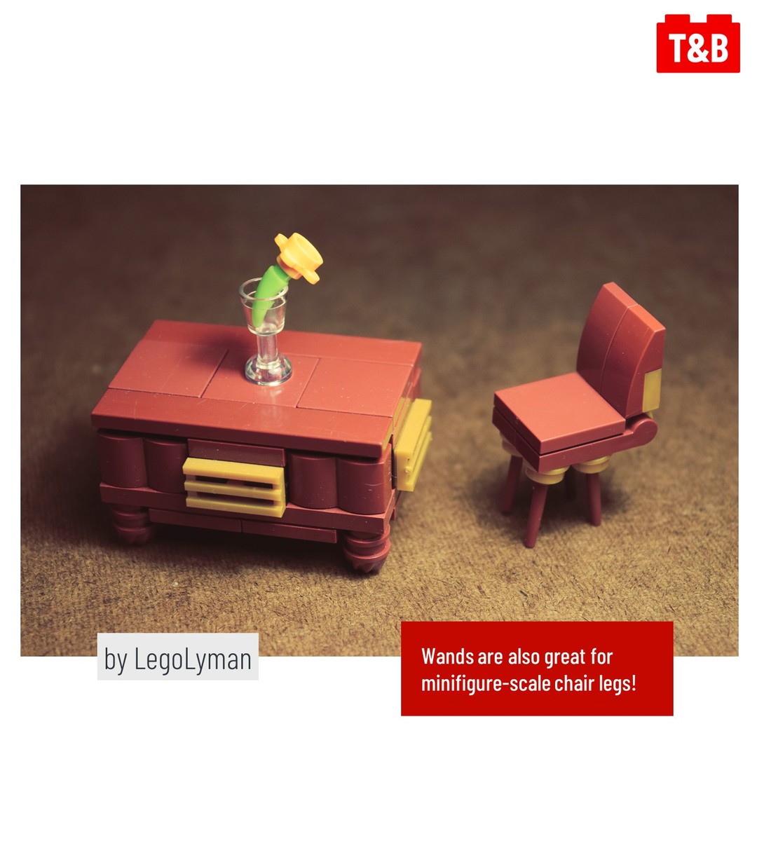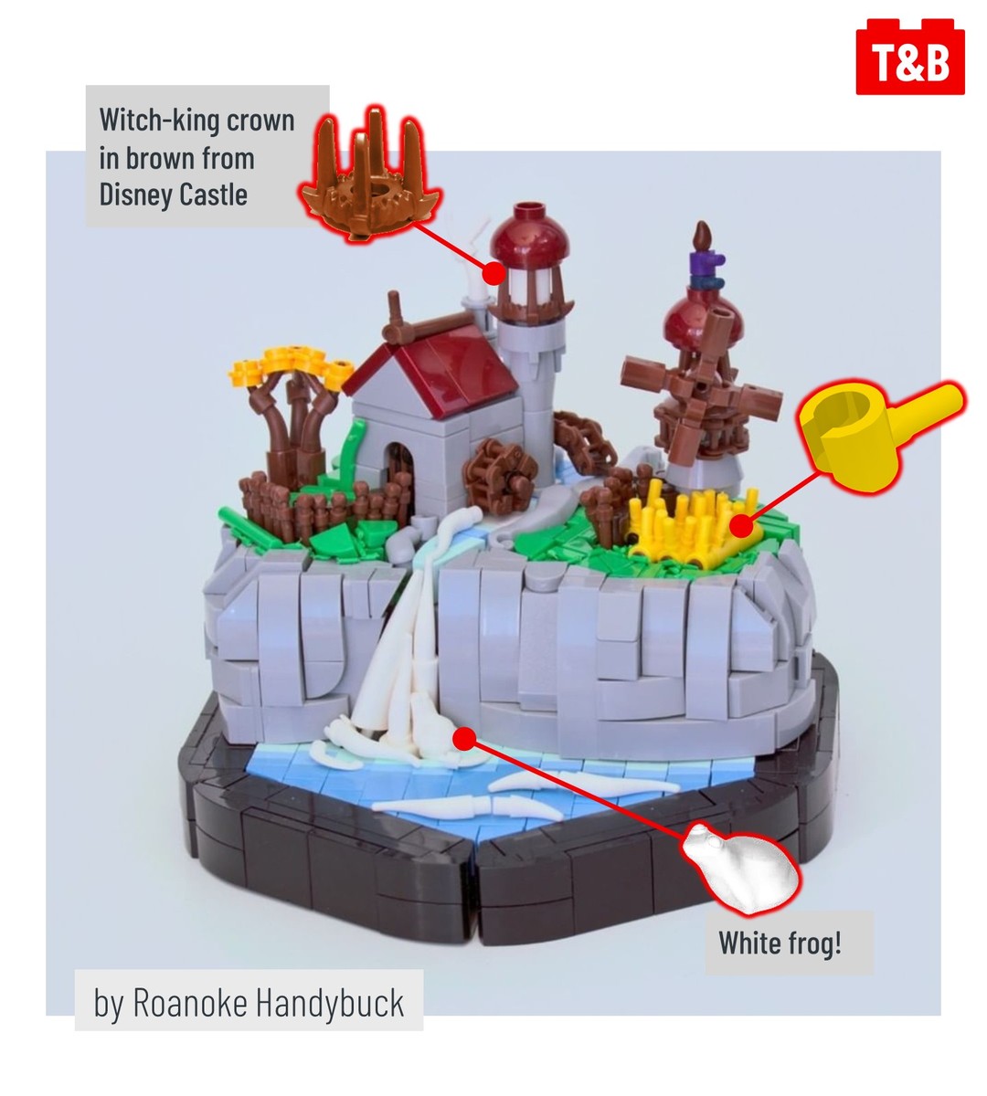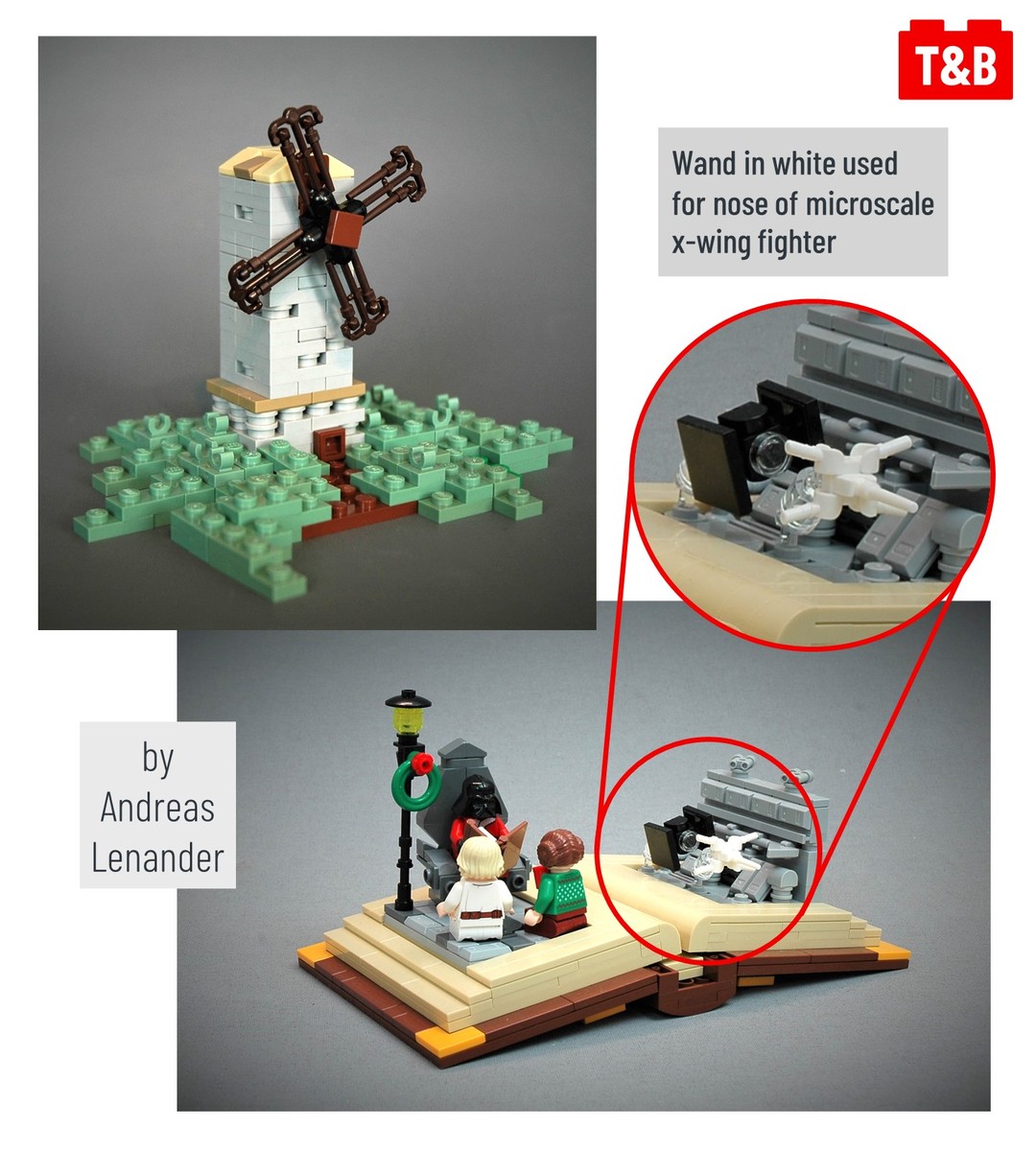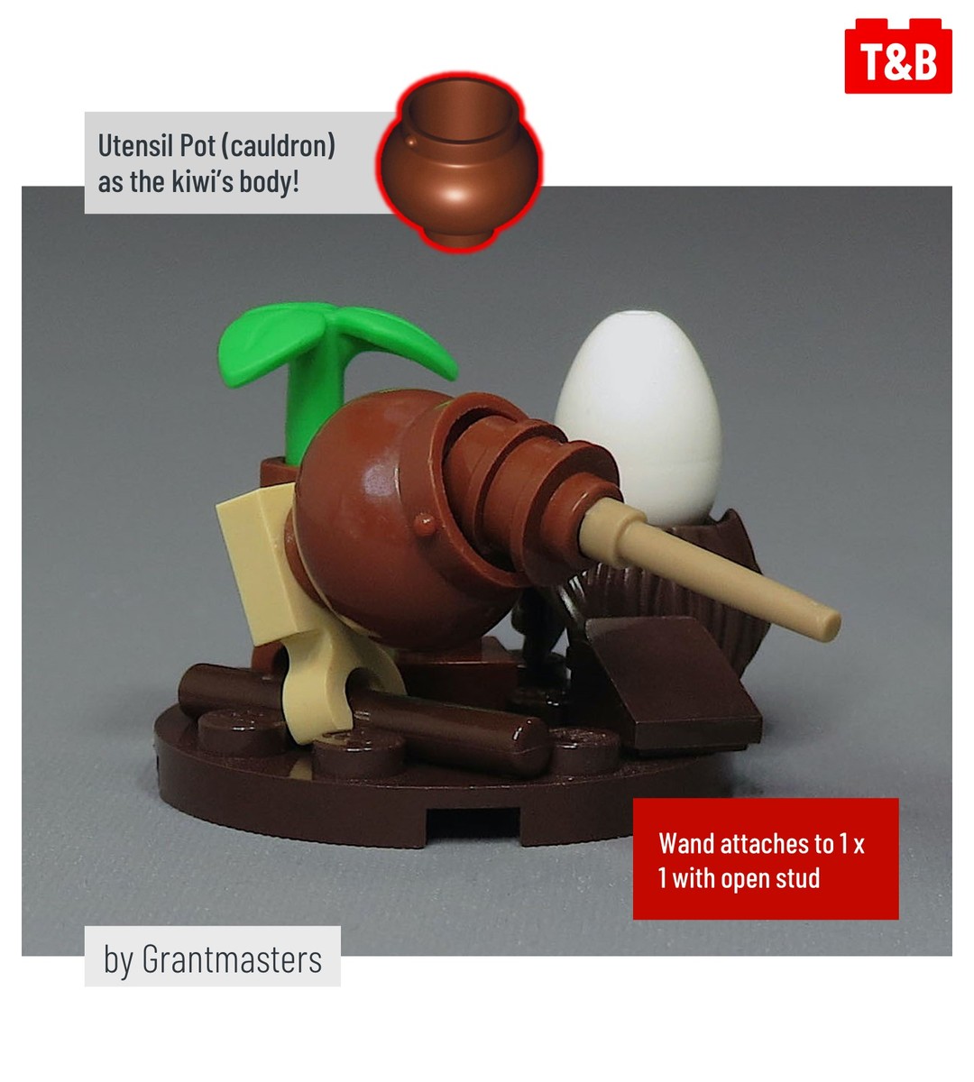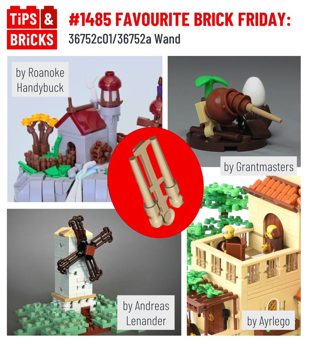 Here, @roanokehandybuck uses a large number of wands to create a microscale wooden fence, and @grantmasters uses a single wand to create a cute, fat kiwi bird. @drdoddo meanwhile uses the wands as they are attached to the sprue as the blades of a windmill, and @ayrlegodc also uses the sprue to create an ornate railing for an elegant balcony.