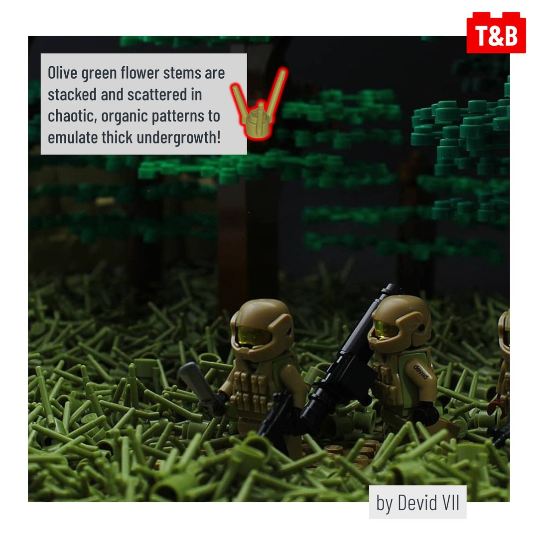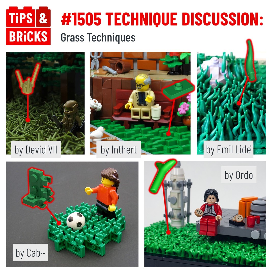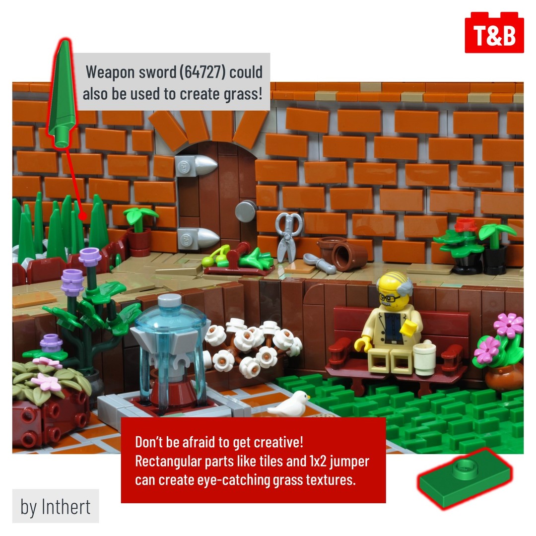 For some organised chaos, check out @devid_vii’s use of scattered flower stems, while @inthert.lego takes a more orderly approach, using rectangular tiles to create stylised, pop art-esque grass (both builders on Instagram).