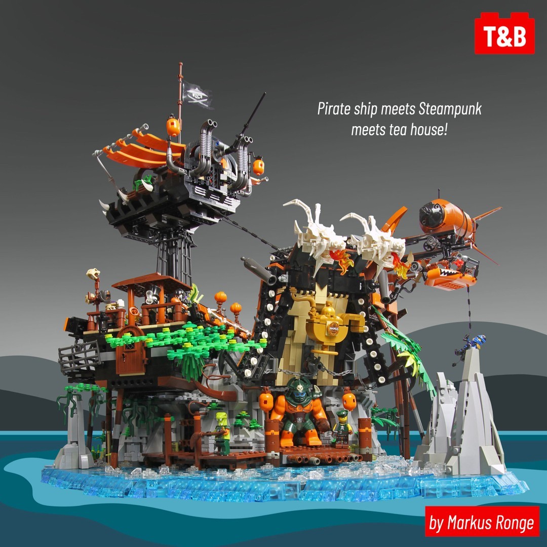 Today we’re showcasing an epic MOC collaboration of 9 builders who came together at Berlin Steinewahn 2021 to expand Ninjago City. The overall take on the City was to add some more steampunk elements and designs, which works really well with the originals set designs. The builders made sure to add plenty of minifigures in action to bring the builds to life. The City looks so tied together it’s hard to believe that it was build by so many different people! Well done, RogueBricks!