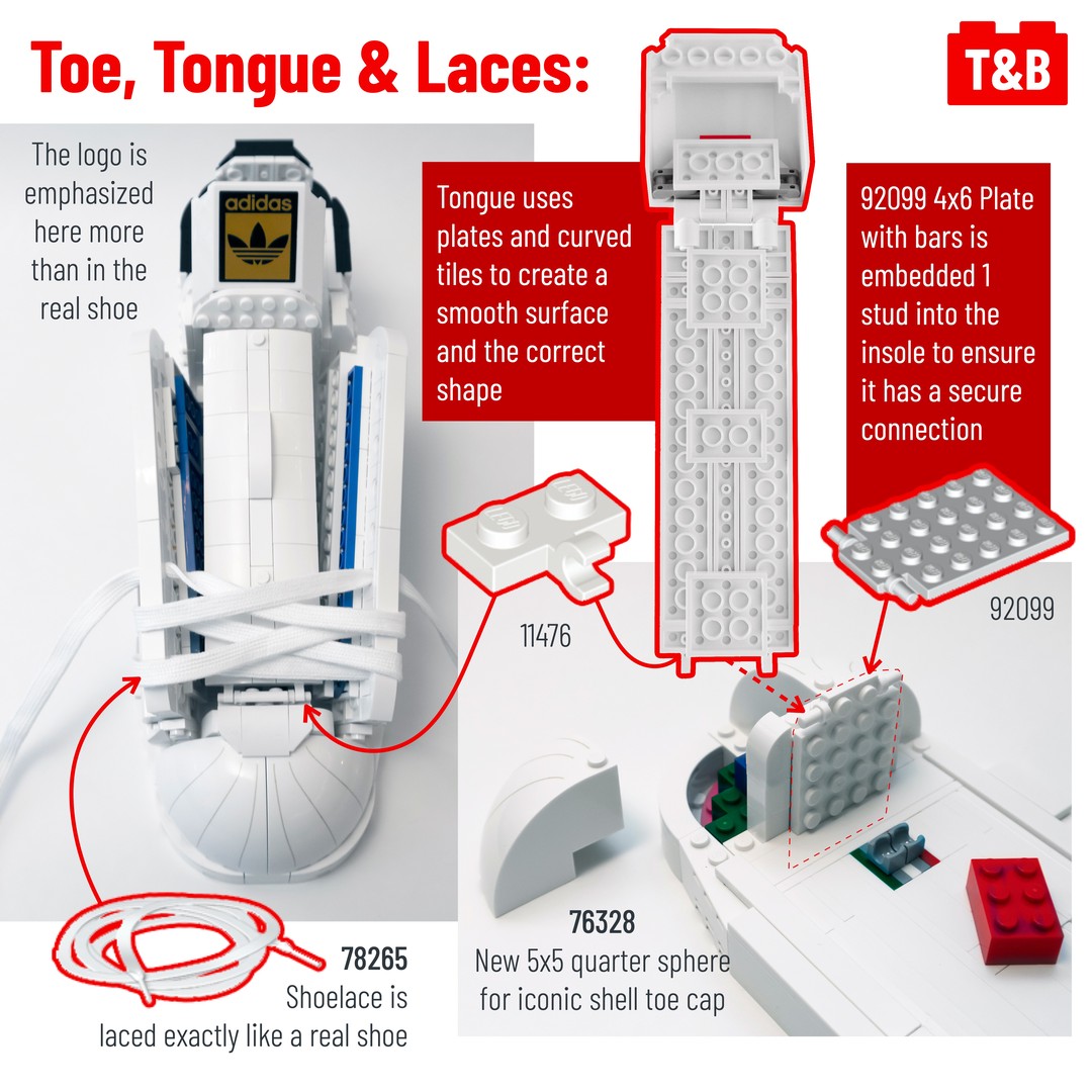 However, between these two brands, there is a high collectibility factor with this set—for both AFOLs and sneaker heads alike. In fact, according to Brickset, there is even a very rare (near impossible to find with research on our end) special edition of this set “10282-2: Adidas Originals Superstar X Footshop ‘Blueprinting’” that was redesigned by Footshop, a sneaker and shoe retailer in Prague. The model takes this version of the Superstar and changes its black detailing to dark blue with custom printed branding for Footshop. Let us know if you know anything about this obscure set!