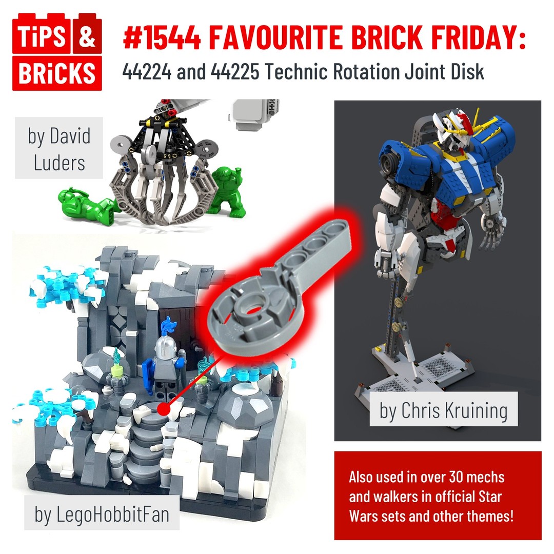 @legohobbitfan ingeniously uses these two interconnecting joint parts as round, flat stone steps. Meanwhile, @chriskruining demonstrates the structural strength of these parts—they make great angled frames for stands, mechs, and more!