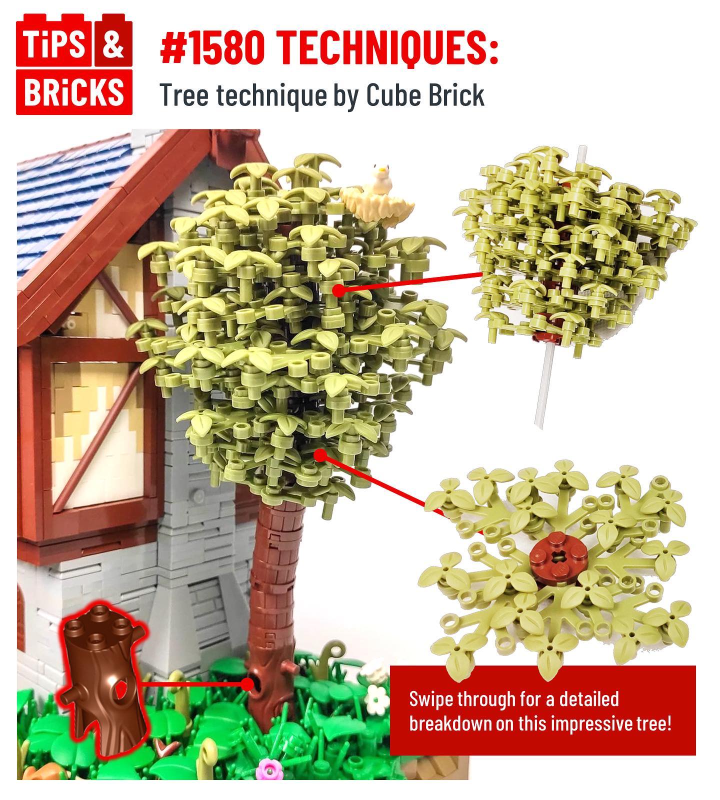 Today’s technique post is a brilliant tree technique by @cube.brick ! Using just three parts to construct the foliage, Cube Brick creates a dense but organic and natural-looking tree canopy that is connected to a textured trunk made of barrels and a minifigure-costume. The concept is simple but the result is very effective, and makes the perfect addition to an outdoor landscape!