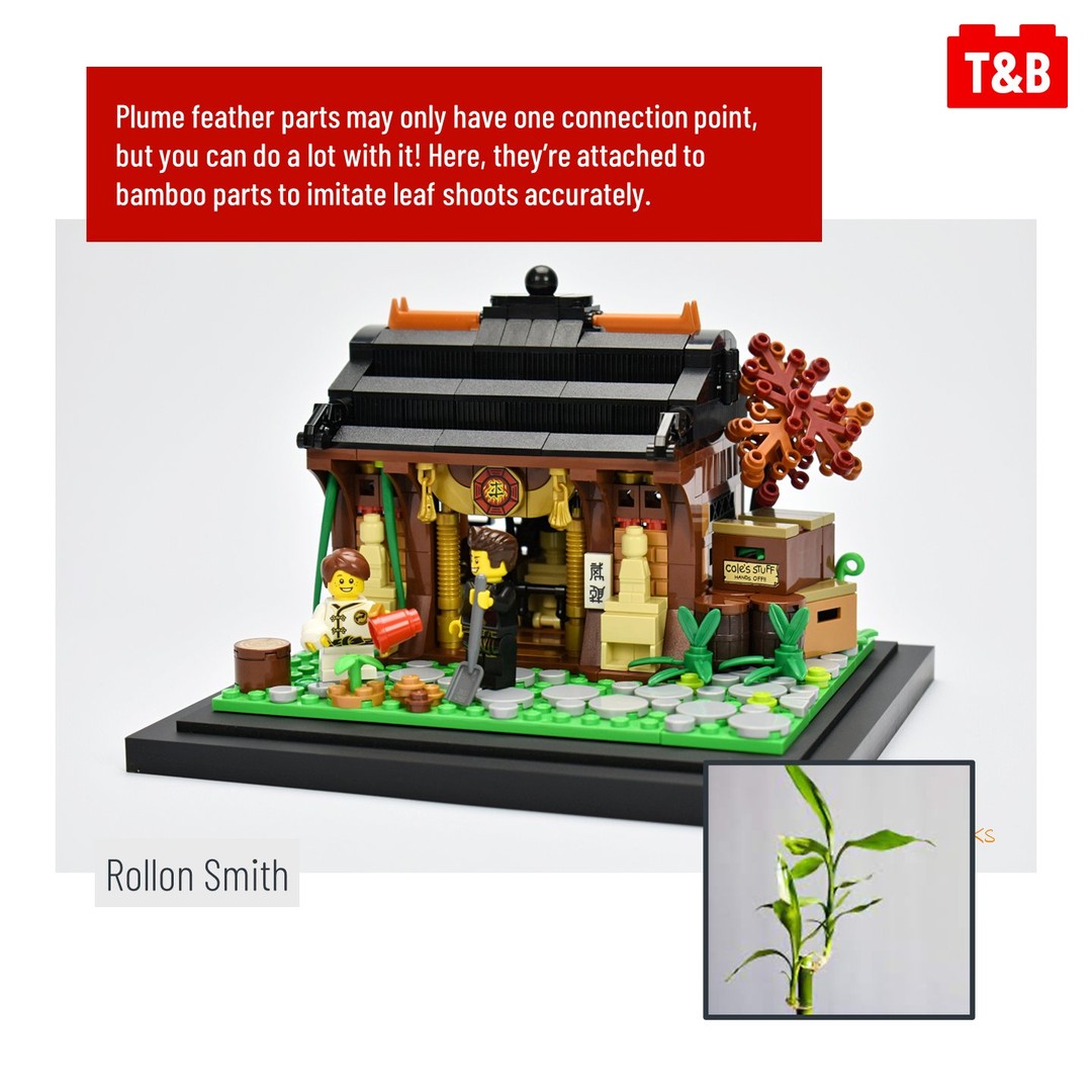 @moriartus uses this element as the leaves of a tree, while @stlbrickco uses them to create a detailed roof. @rsmbricks uses them as bamboo shoots, and @ryan_howerter uses them in a few ways to create a simply but effective bird.