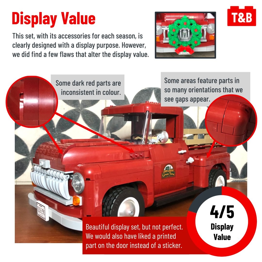 Looking for an addition to your collection of LEGO car models or for a new display piece for your house? The Creator Expert Pickup Truck is a pretty accurate depiction of a 1950s truck and includes components to accessorize your set differently each season!
