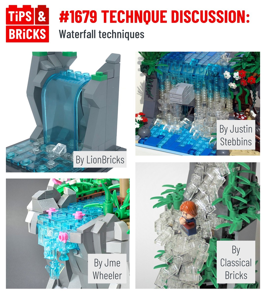 Today we’re looking at waterfalls! These can add some drama to your builds and are actually fairly easy to implement with only a few types of pieces. Each technique shown in features very different pieces compared to the others, but the similarity is their use of transparent bricks. Let us know your favourite technique in the comments!
