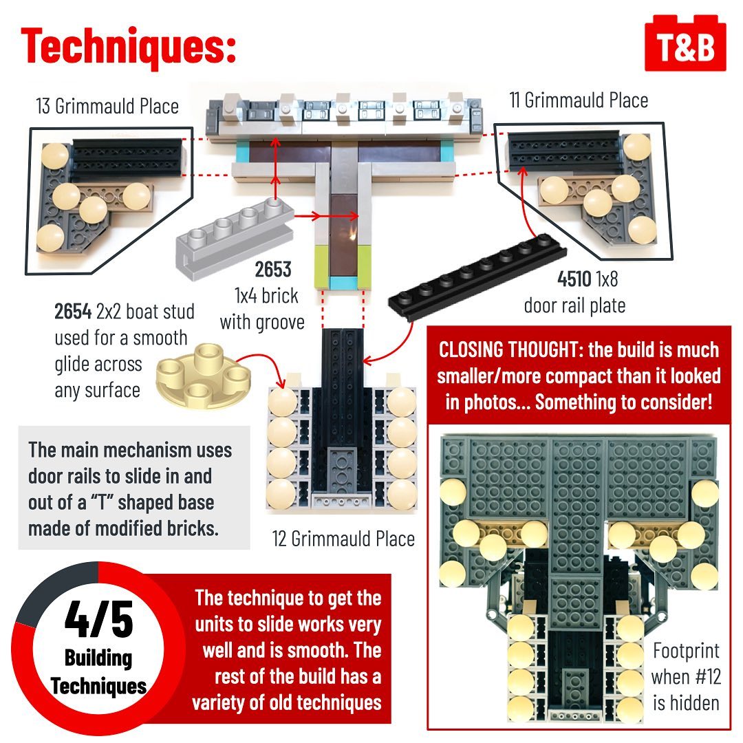 Today we’re reviewing the brand new LEGO set depicting a long awaited location from the Wizarding World: 12 Grimmauld Place! The ancestral home of the pure blood Black family, this set is a new concept for LEGO and showcases the most interesting part of this house: the way it appears (magically of course) from between its neighbors. The designers use a combination of clever techniques to achieve this effect!