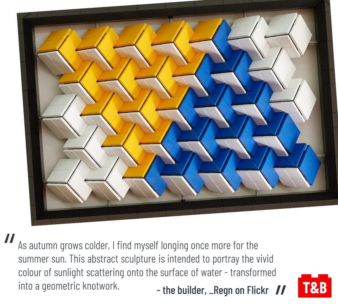 Some MOCs showcase how LEGO really can be an art from; and today’s feature is one of those builds. Reflection by _Regn on Flickr is an abstract, geometric build that is intended to portray the vivid colour of sunlight scattering onto the surface of water. Furthermore, the insight we get into the technique that creates the simple pattern is intriguing!