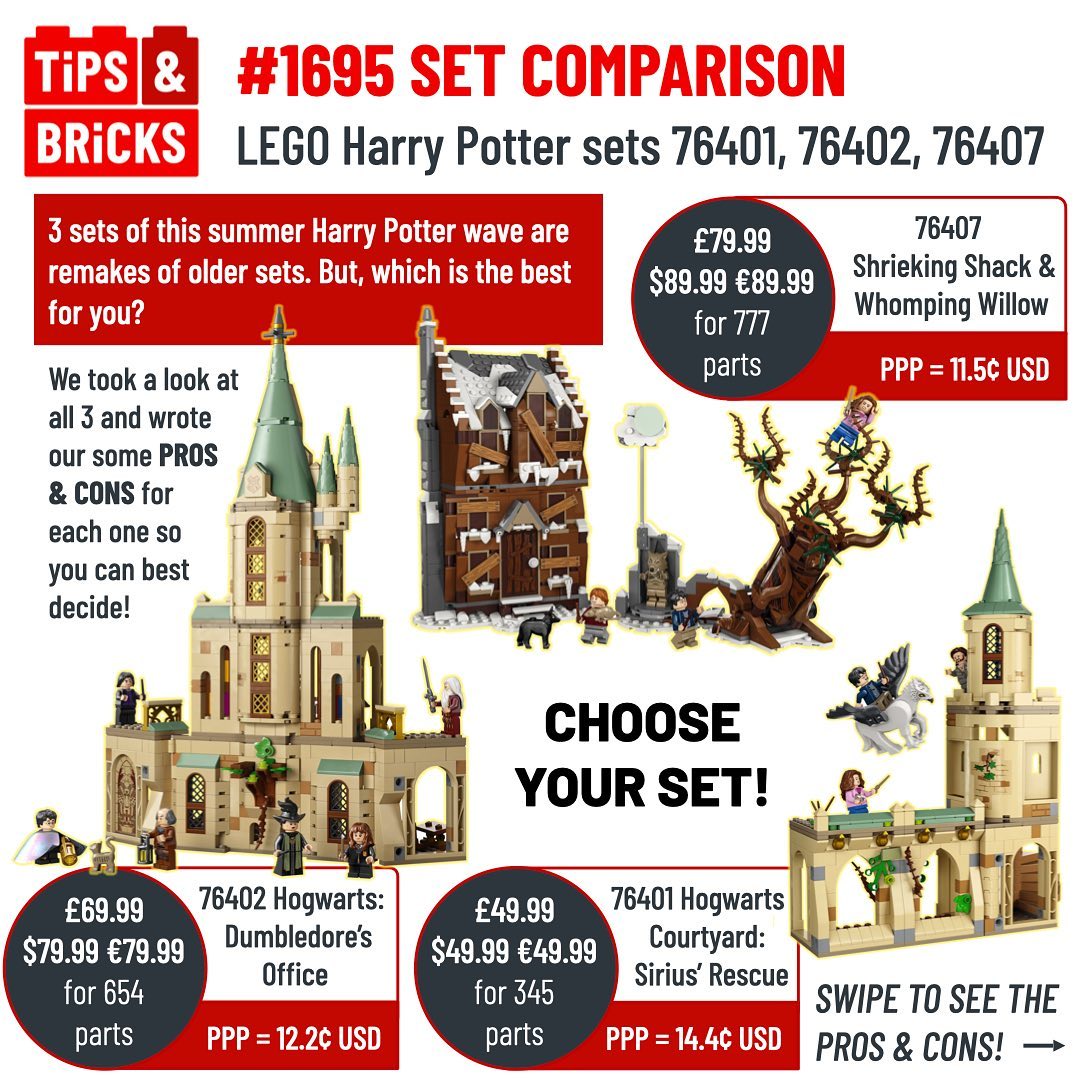 Today we’re trying something a little different: with all the new sets coming out this summer, it can be hard to figure out how to prioritize your spending (we all have a budget ideally, right?). For the upcoming Harry Potter summer wave, we took the 3 sets of the wave that are remakes of early 2000’s sets and compared them not only to their original versions but also to each other, to give you a list of PROS & CONS to use for your important purchasing decisions!