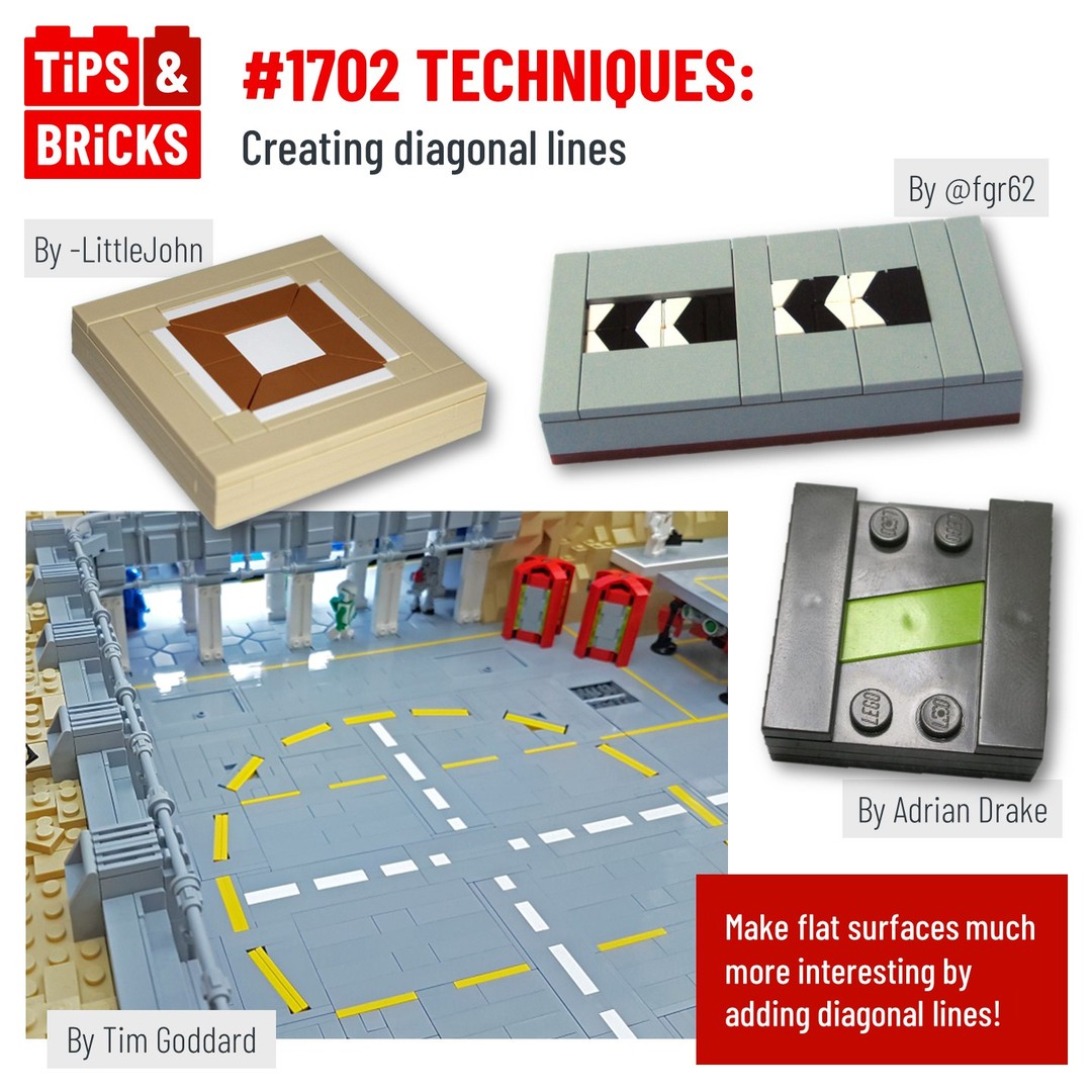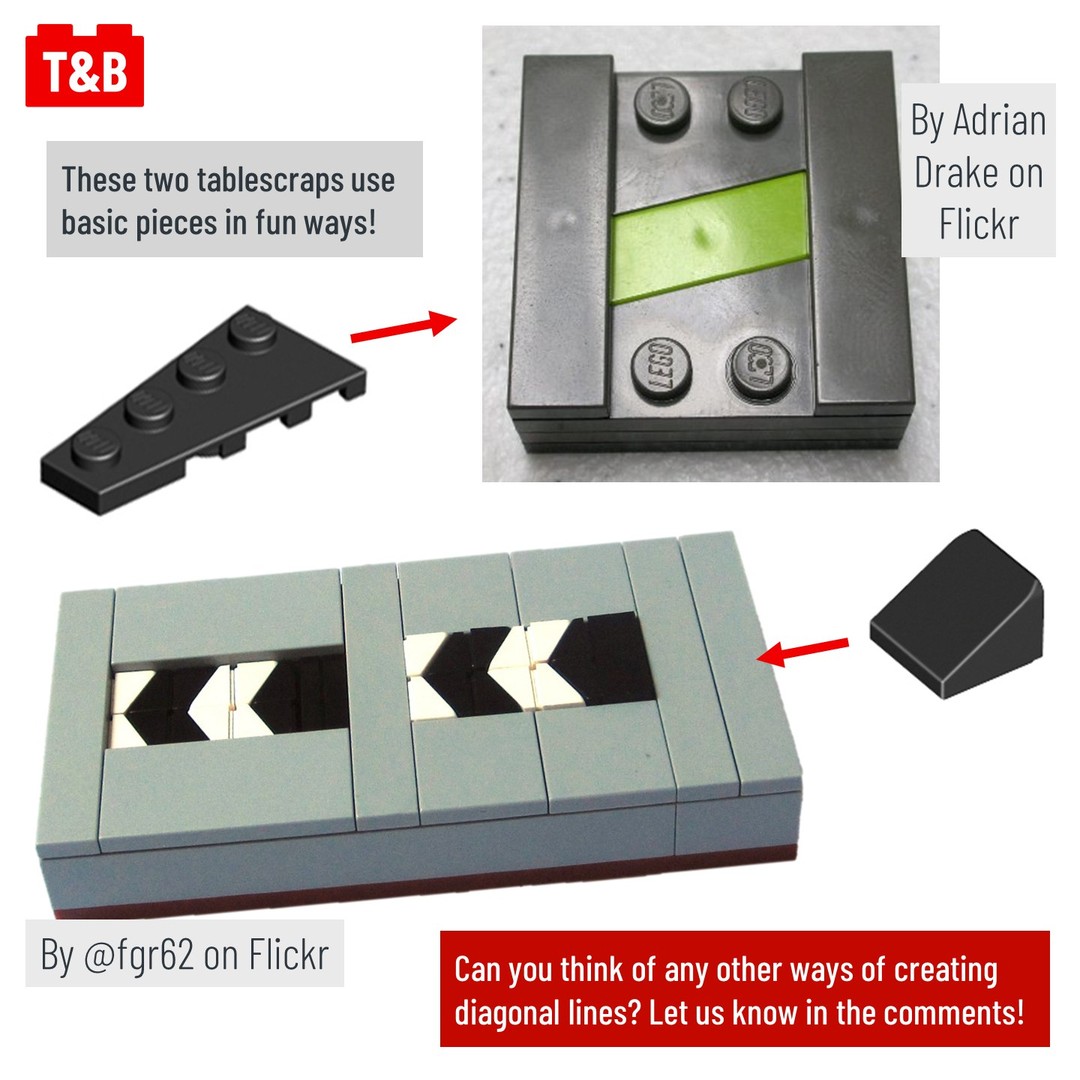 Lay down enough tiles and you’ll get sick of all of the square edges…. enter today’s post, showing you different ways of adding diagonal lines to make the flat surfaces in your MOCs much more interesting. Let us know your favourite technique in the comments and share any other ways you can think of to create diagonal lines.