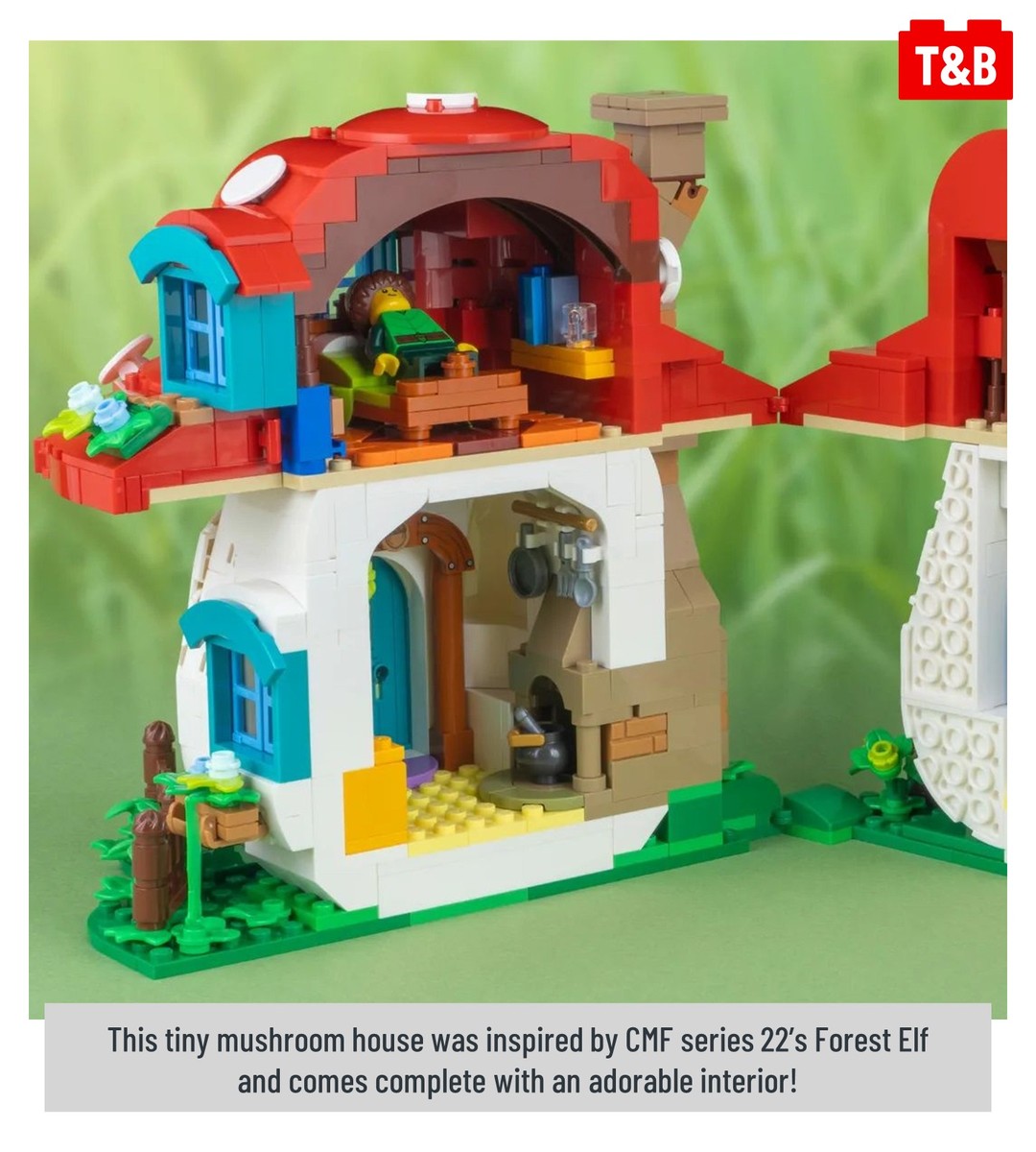 Today’s build comes from the incredibly talented Jonas Kramm. Inspired by the series 22 Forest Elf figure, Jonas has put together a strikingly vibrant MOC where the elves can work and play. The blue and red of the build shine against the white of the stem, and the miniature details really bring this small forest world to life as these miniature friends toil away in and around their fully-furnished mushroom house.