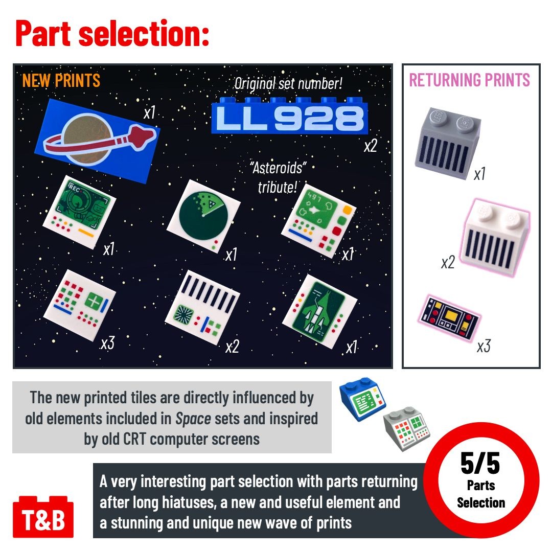 New features include a new bigger cockpit, essential for accommodating the returning astronauts from the 1979 lineup and their companion droid, as well as a host of new prints based on vintage Space printed elements!
