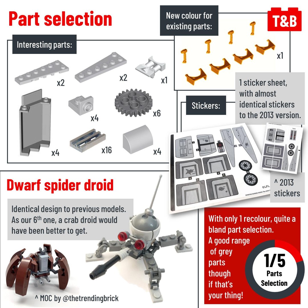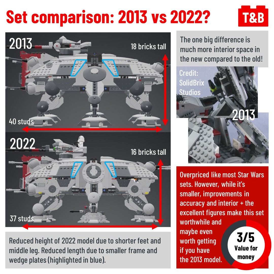 The set was a high scorer in many of our categories, as there are a numerous improvements over previous versions like the spacious interior, more accurate feet sizes and detailed minifigures. A lot of techniques stay the same, but work well so why change them? However, the set falls into many of the same pitfalls as other Star Wars sets – a lot of grey and unspecialised parts (which is to be expected but doesn’t make this set ideal for MOC builders) plus a steep price tag.