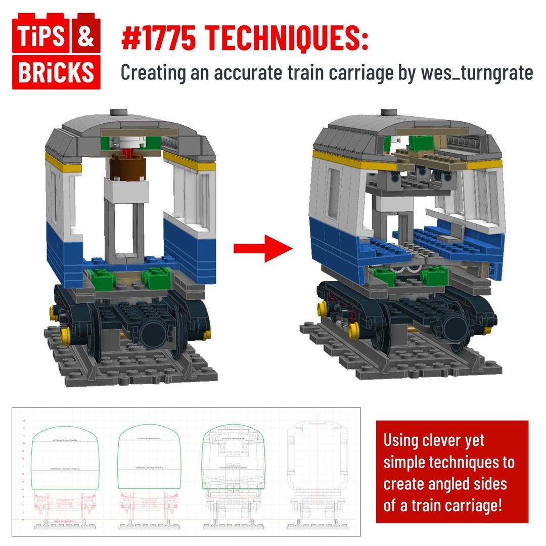 In today’s post we discover how train builders can take their carriages to the next level with angled sides! Check out the images for how builder wes_turngrate on Flickr followed a precise process then employed clever yet simple techniques to turn sketches into LEGO builds.