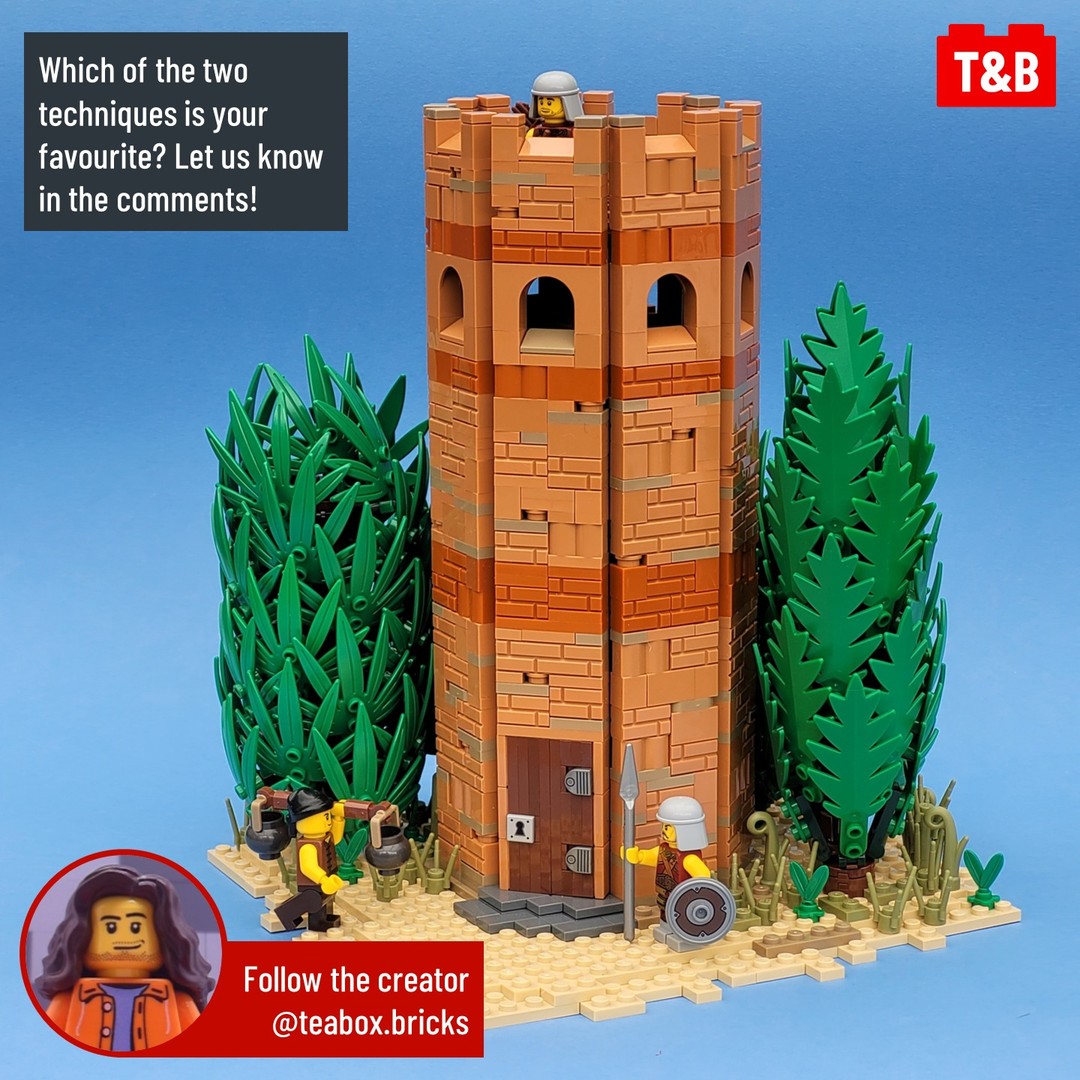 Today we’re looking at two tree or large bush techniques by @teabox.bricks. Both are actually quite simple, only requiring a few types of part, but they use two completely different methods to position the palm tree leaves. Le us know which one is your favourite in the comments!