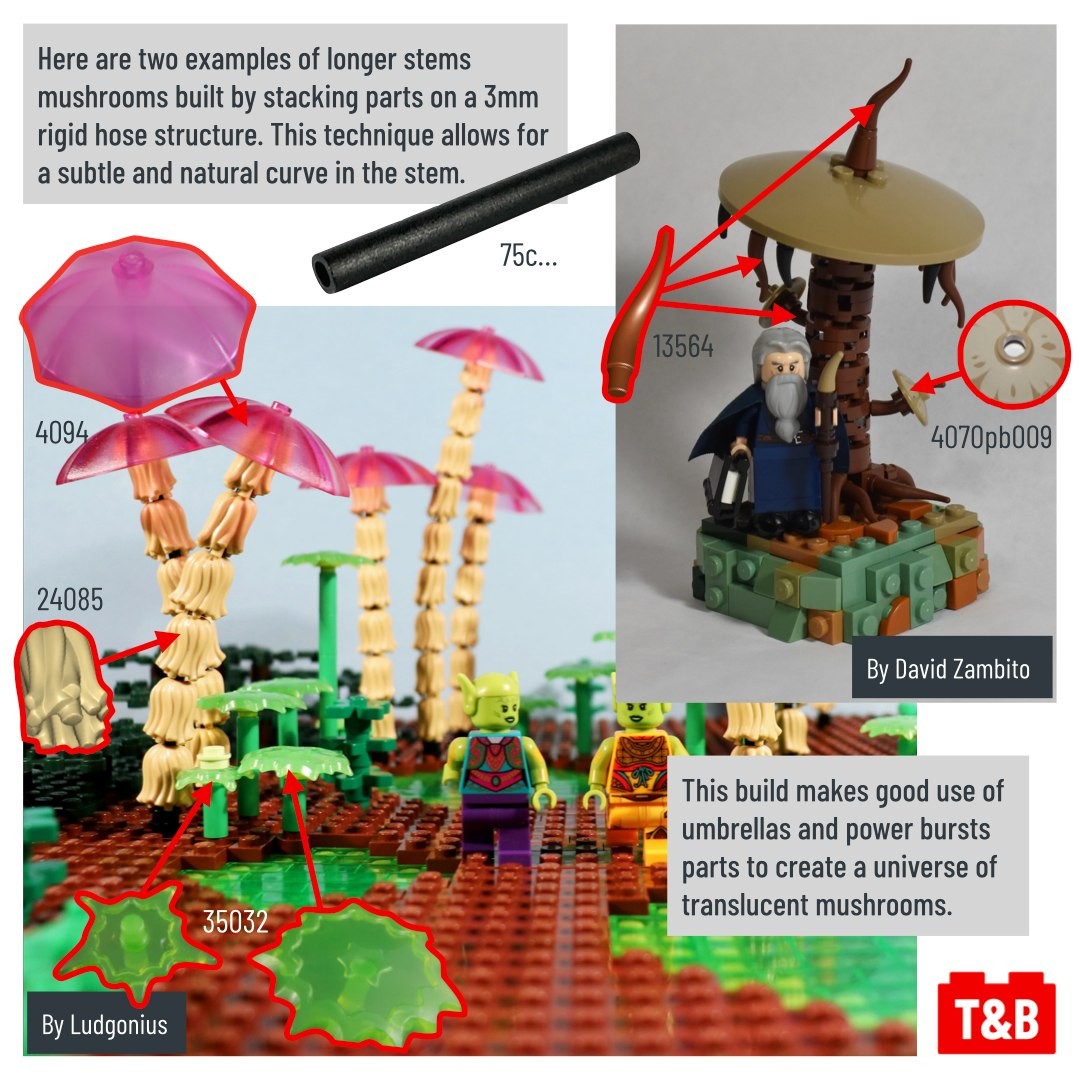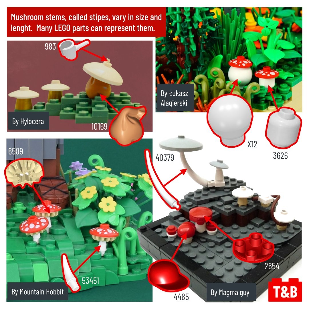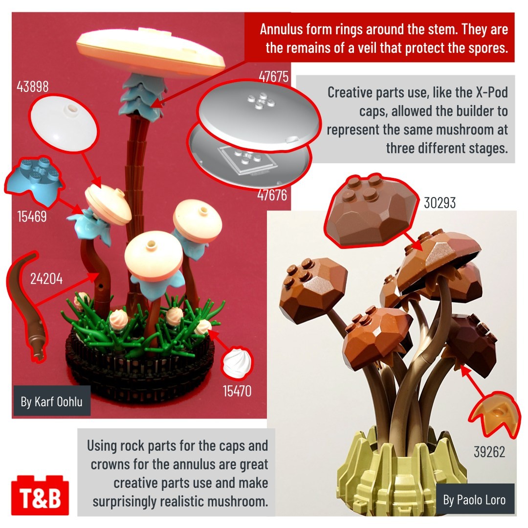 Today, we are taking you on a mushroom walk through the forest, fields, caves… and even other planets! On our way, we will get to see a variety of gorgeous mushroom designed using clever techniques and very creative parts use.