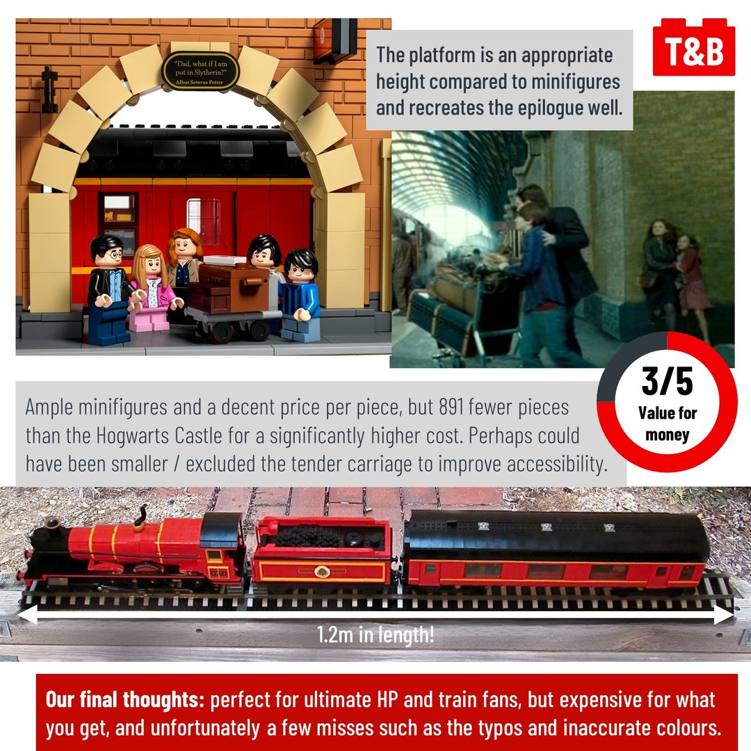 All aboard the Hogwarts Express, for today we review the latest Collectors’ Edition Harry Potter set! There’s no denying it’s an iconic display piece – and with 20 minifigures, clever building techniques and the 10 stud wide carriages providing plenty of space for scenes from the films, this could very well be your ideal set. Unfortunately though, there are a few misses such as typos and inaccurate colours that are disappointing but shouldn’t put you off the set entirely. If you trying to decide whether to get this set, the decision will be: do you have the space, and the spare cash, to buy and display it?