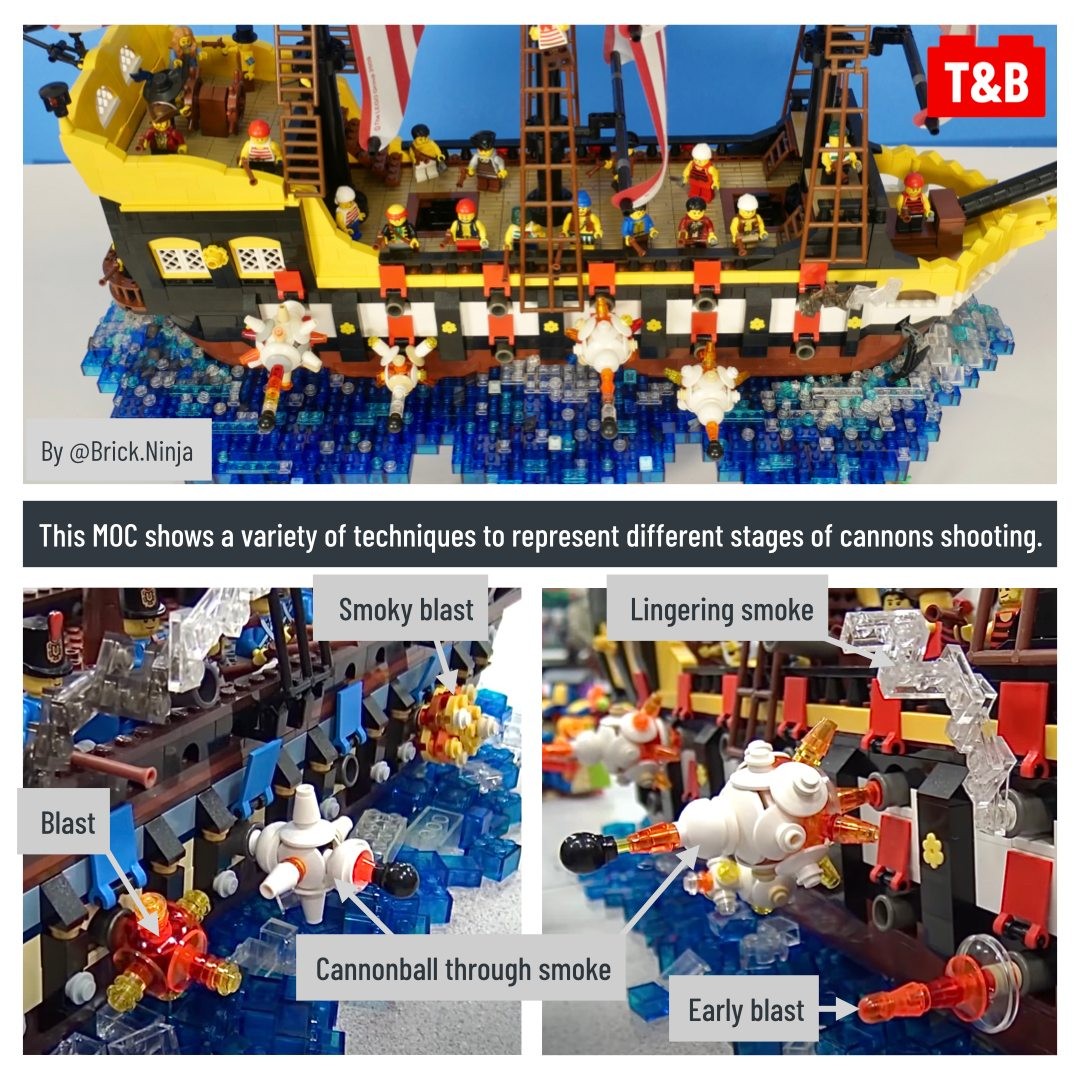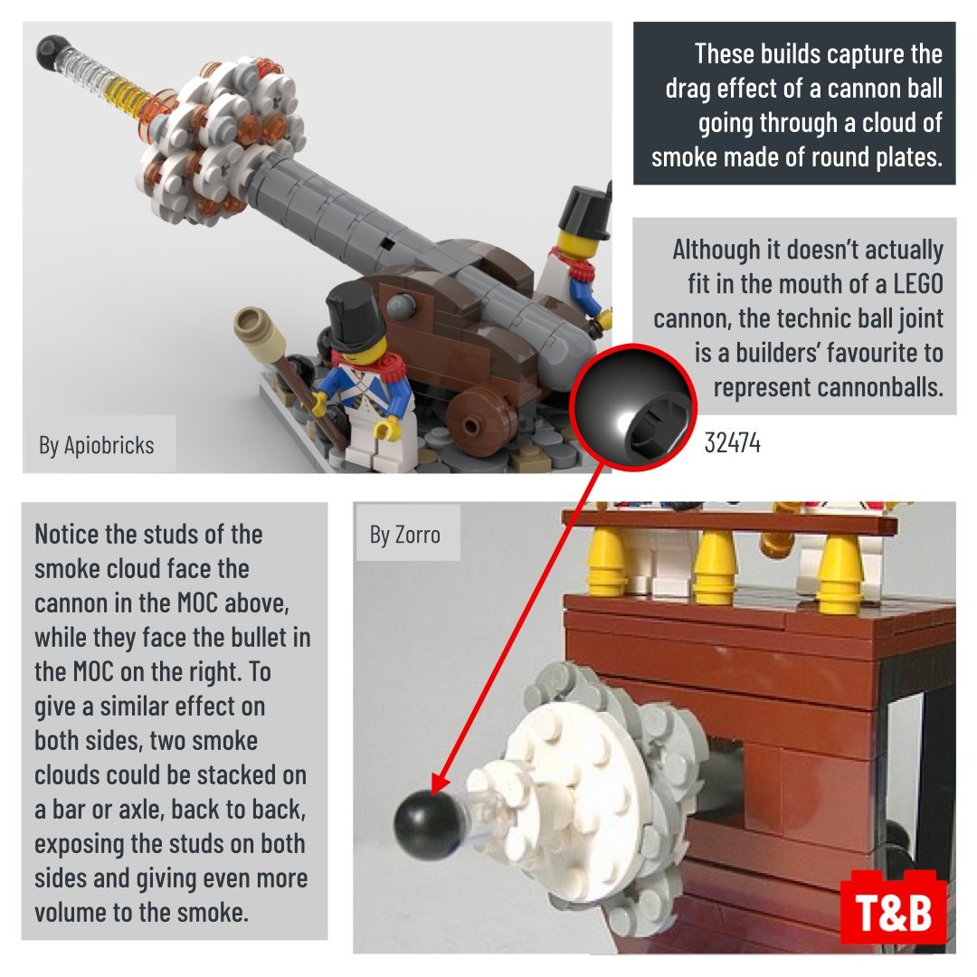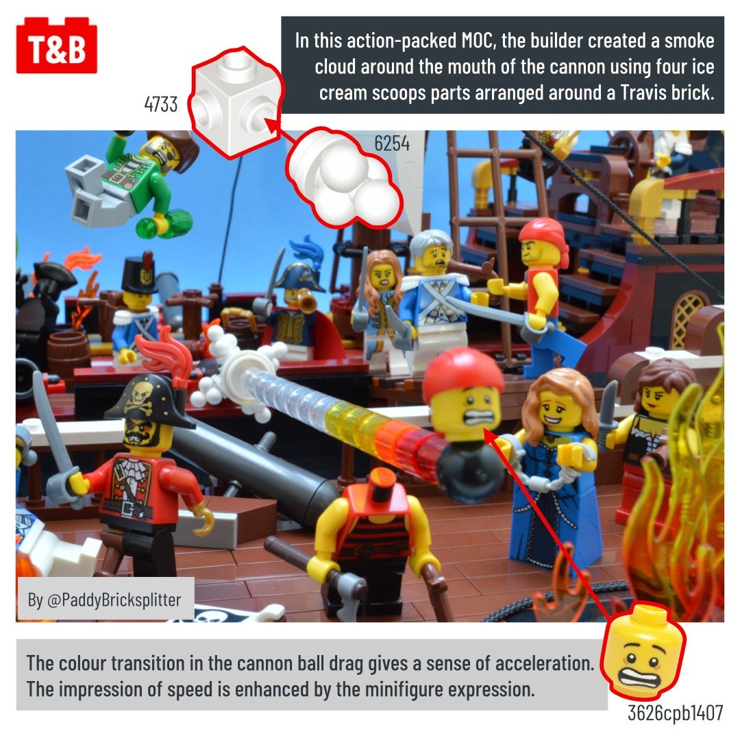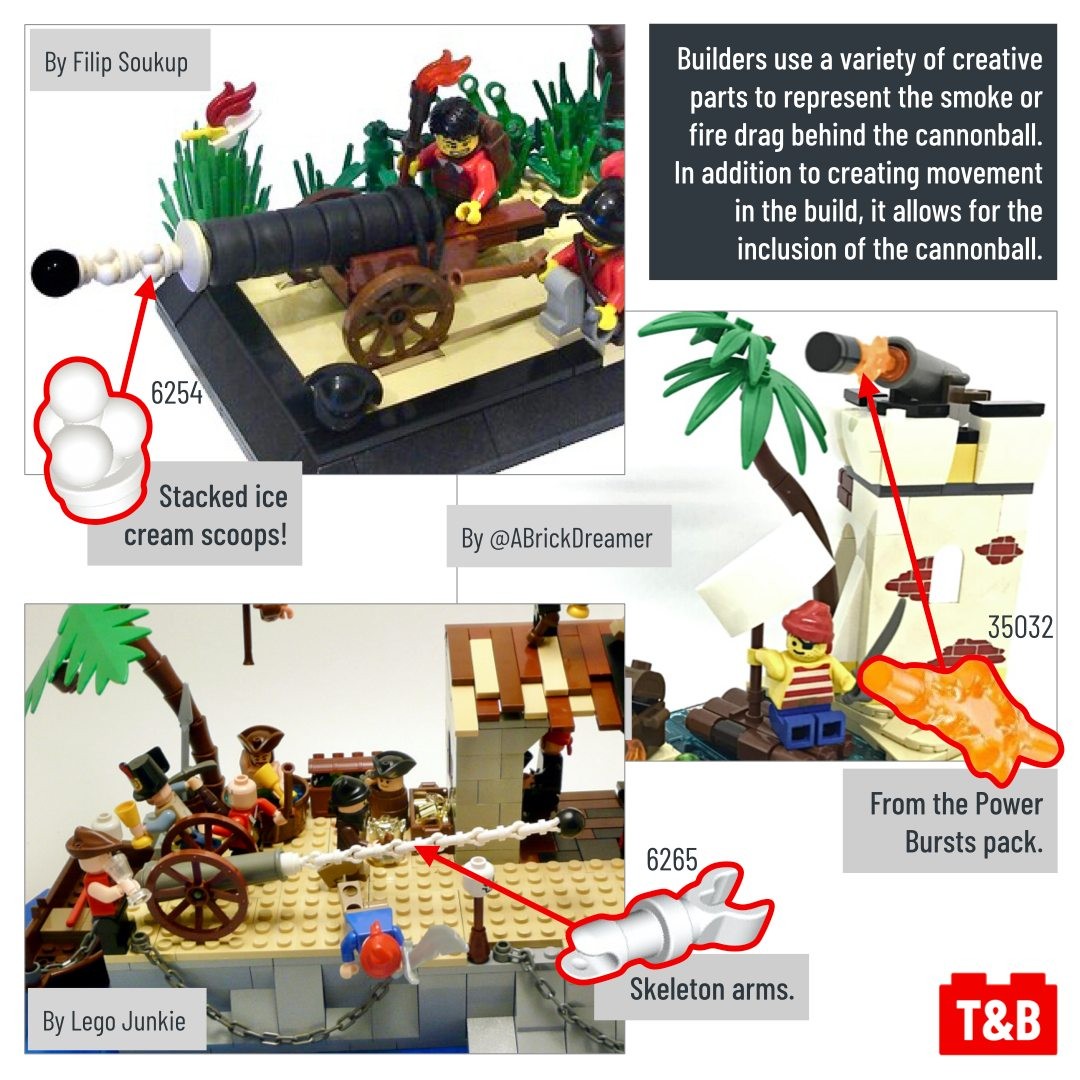 Adding movement is key to a great build. In this techniques discussion post, we look at different ways to make cannons more dynamic. Smoke clouds, cannonballs drag and other explosive techniques are sure to be a hit in your next pirate MOC!