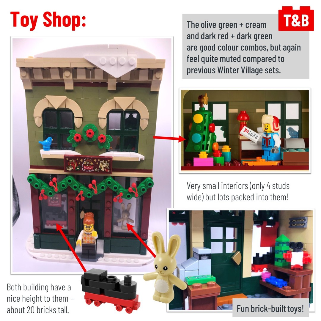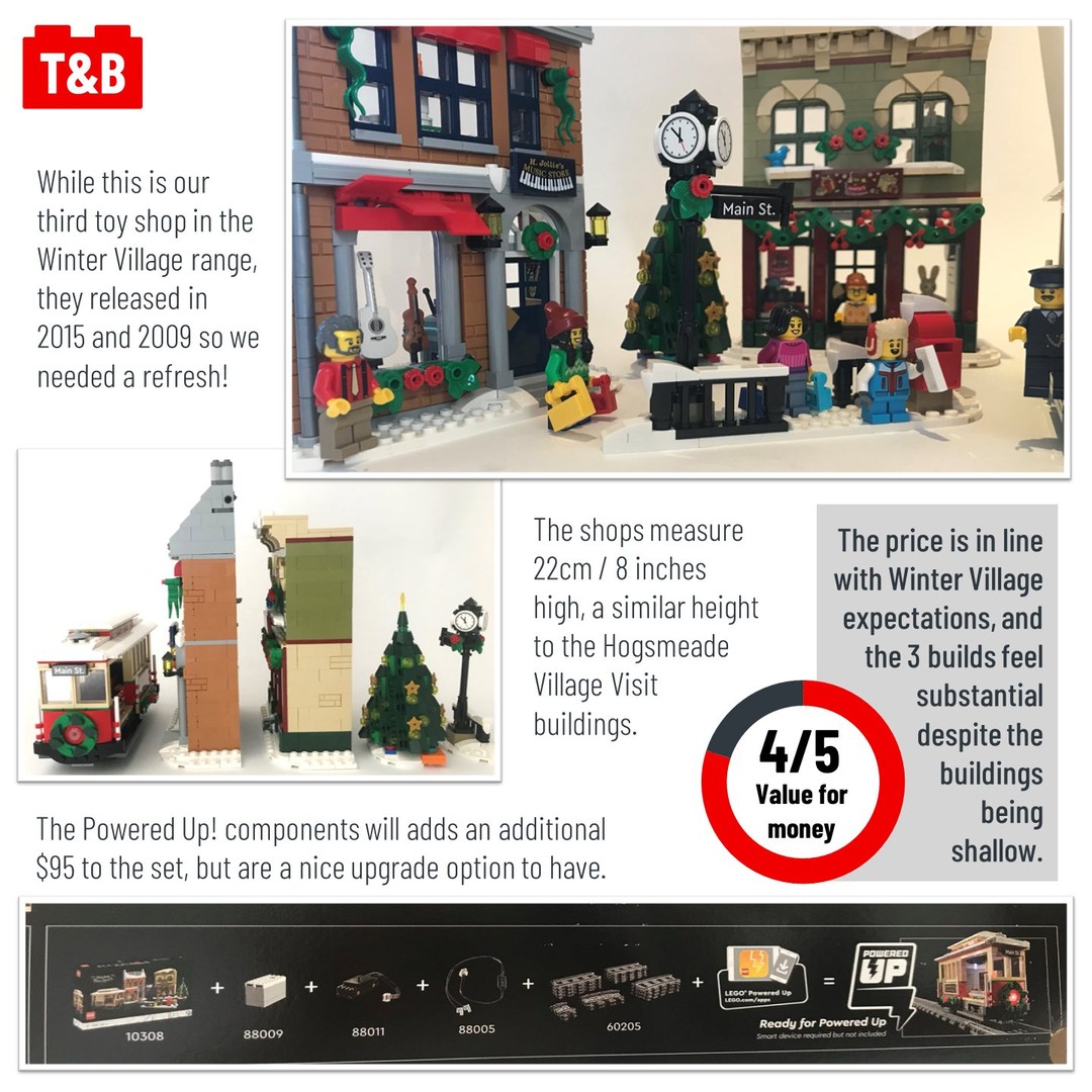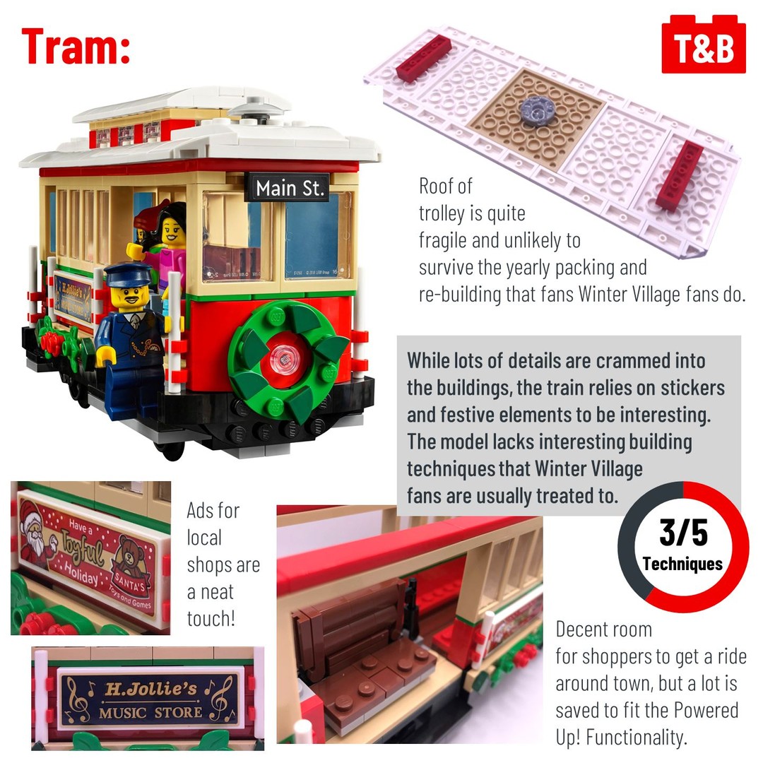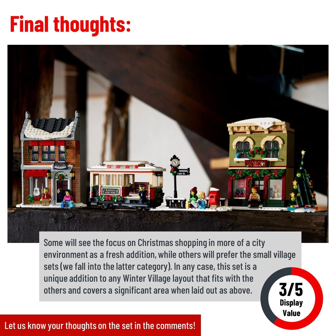 Today we review the latest addition to the Winter Village! Comprised of 2 shops, a tram and additional scenery such as a postbox and Christmas tree, this set brings us more “downtown” rather than our usual village setting. Is this a worthy addition to the line or has LEGO lost the holiday magic? Read our review for our full thoughts and let us know your opinion in the comments.