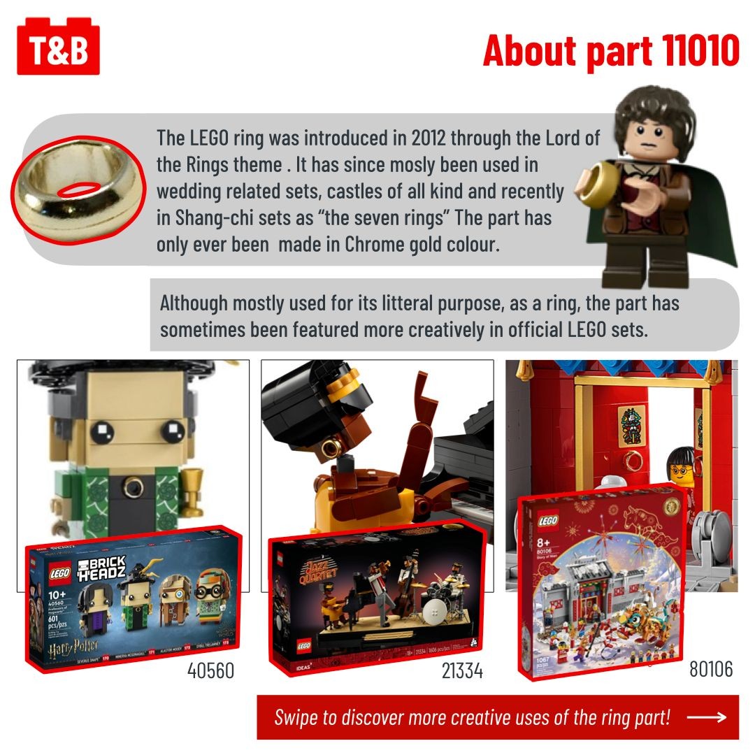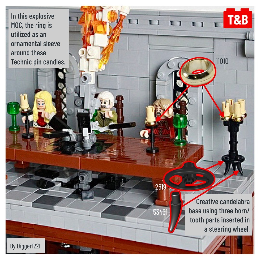 For this week’s Favorite Brick Friday, we are featuring the shiny chrome gold ring (part #11010). With a 3mm thickness, a system stud diameter hole and a rounded edge, this is a unique part for creative building. Let’s explore some of these nice parts uses through this post!
