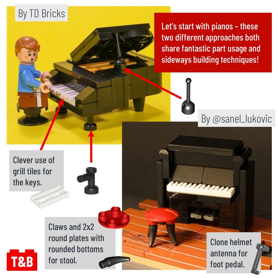 Who doesn’t love music? LEGO has produced many official instrument parts, including a saxophone and violin, but LEGO builders have come up with many ingenious builds for these instruments and many more!