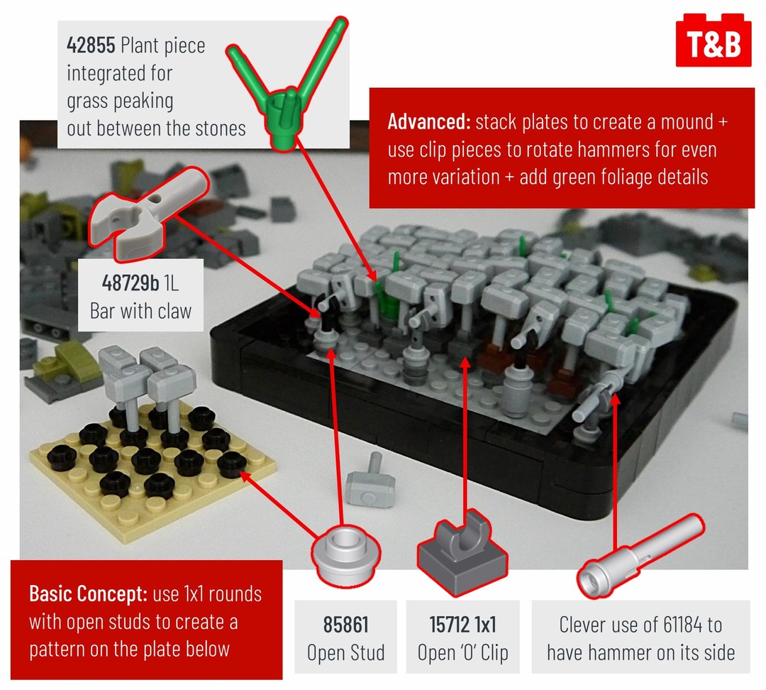 Today we’re looking at a fantastic cobblestone technique that uses Thor’s hammer of all pieces! The technique builds on a basic concept of offsetting the hammers to create a herringbone (zig-zag) pattern to add variety, some height, and foliage!