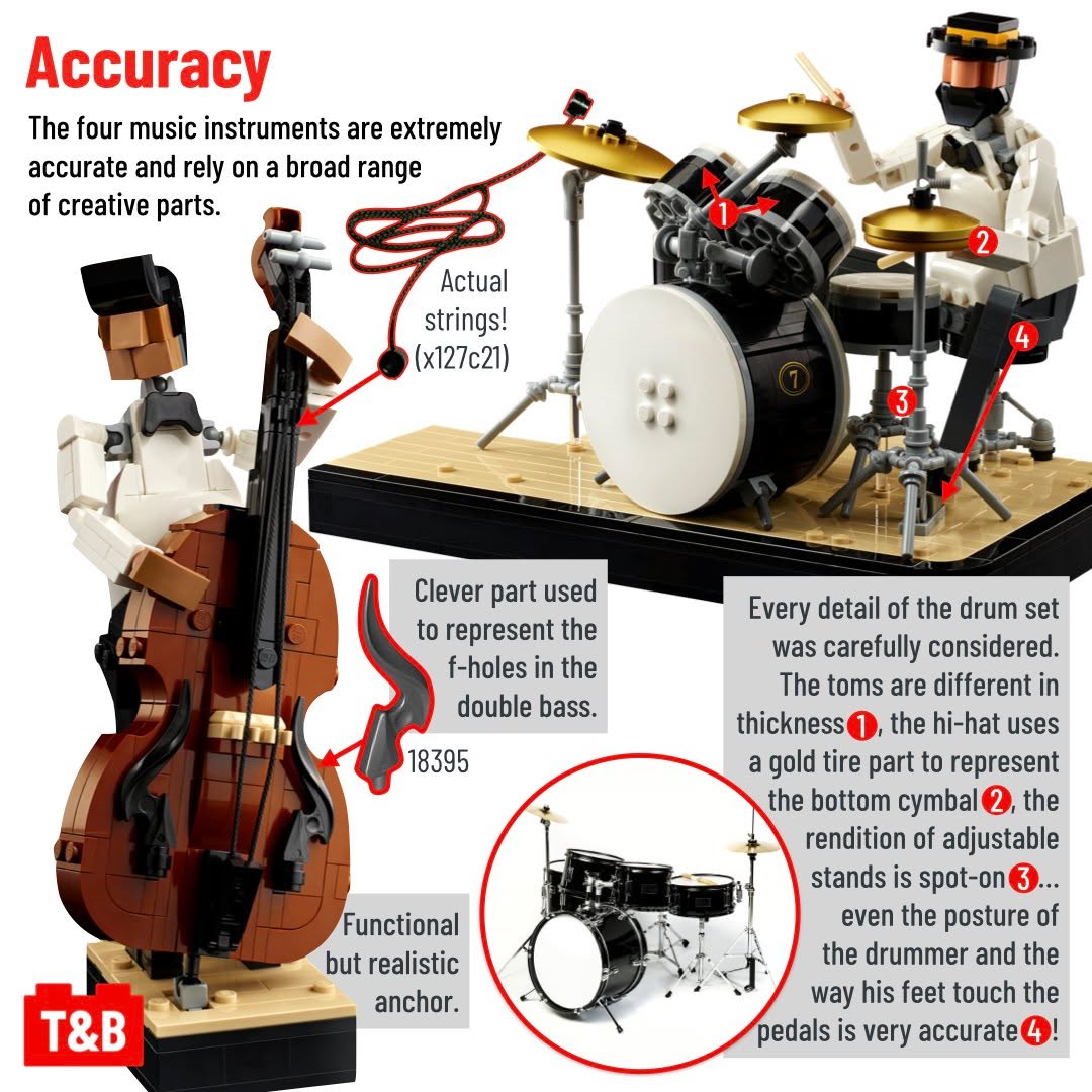 The LEGO Ideas theme has led to the release of some of the most creative sets so far and the Jazz quartet (set 21334) is definitely one of them. The 1606 pieces set is based on an idea submitted by @lego7_creation and the LEGO designers only brought minor changes to the MOC before releasing this superb set.