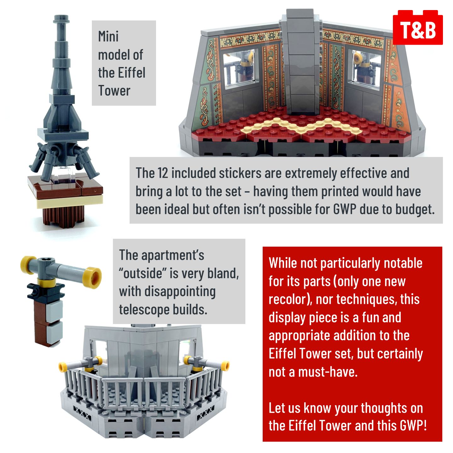 Finally, we take a look at the Gift With Purchase available if you buy the Eiffel Tower before the 28th. Is it worth buying now to get this set – for us it’s not a must-have, but is certainly a nice exclusive addition to the set.