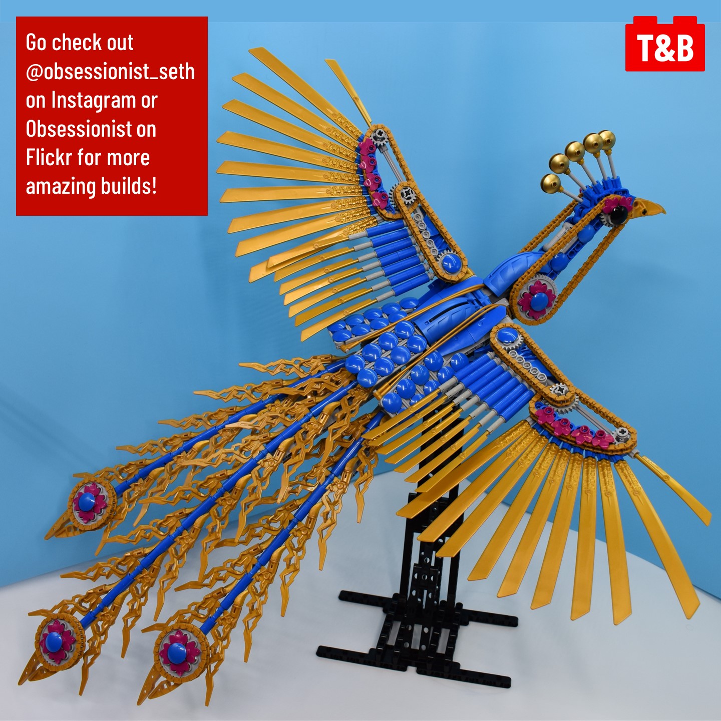 This stunning mechanical peafowl was created by the talented MOC builder @obsessionist_seth or Obsessionist on Flickr. This incredible MOC recreates the majestic look of a peacock with some odd techniques and parts used, and today we’ll be breaking it down in today’s post!