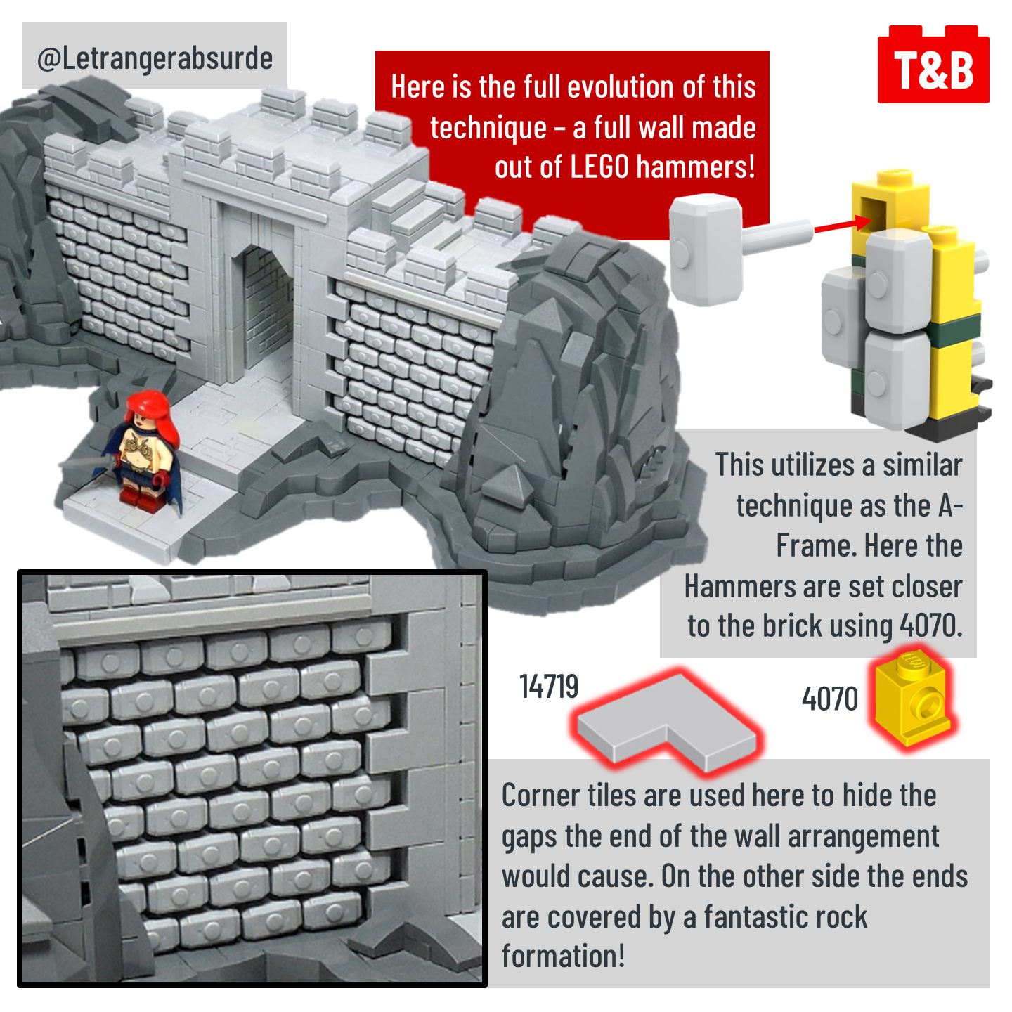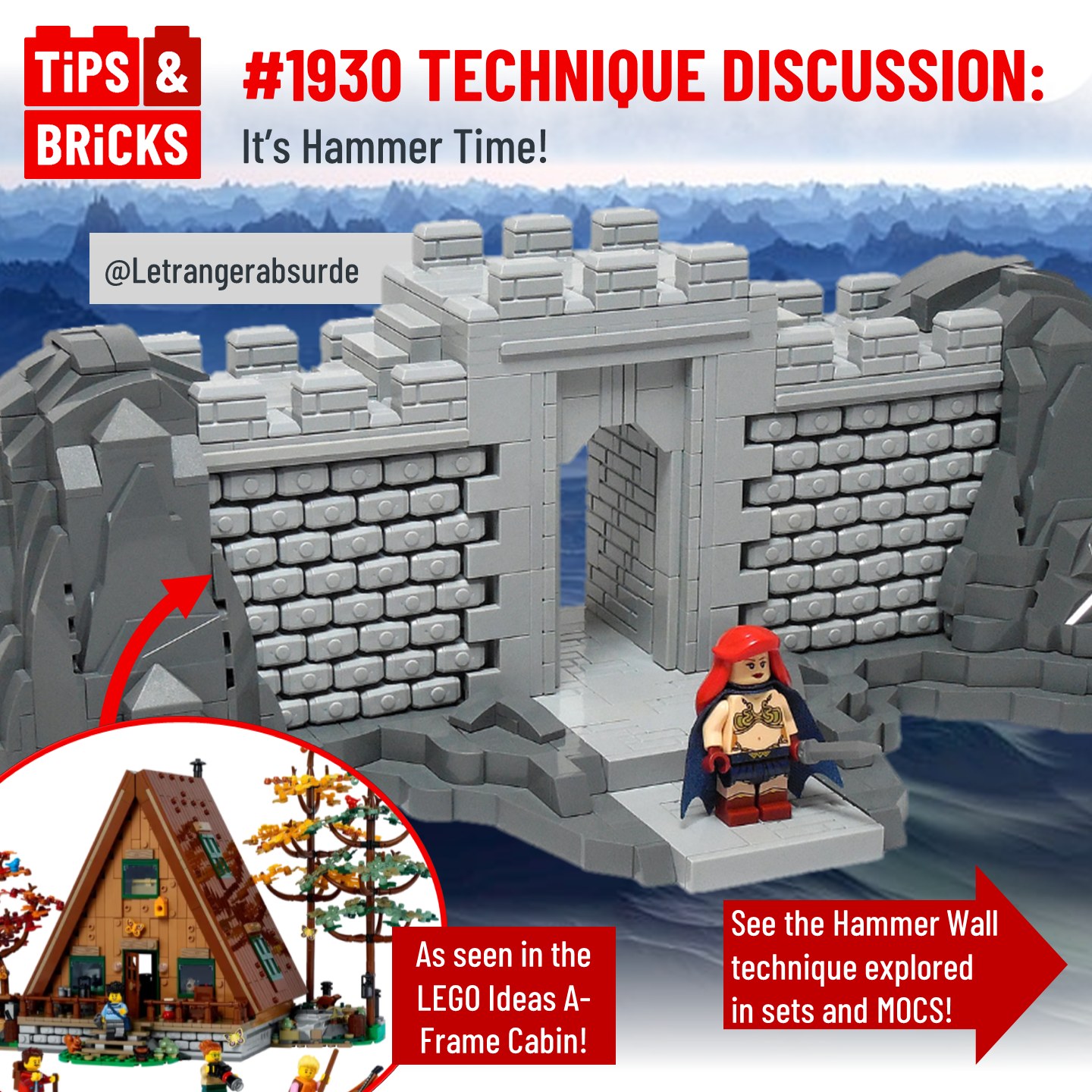 The A-Frame cabin has brought to light a useful technique – and that is to use hammers to build LEGO walls! I no we don’t mean as tools, we mean using the hammers as bricks themselves. Check out this post to see how LEGO and MOC builders have used the Hammer Wall technique to enhance their designs!